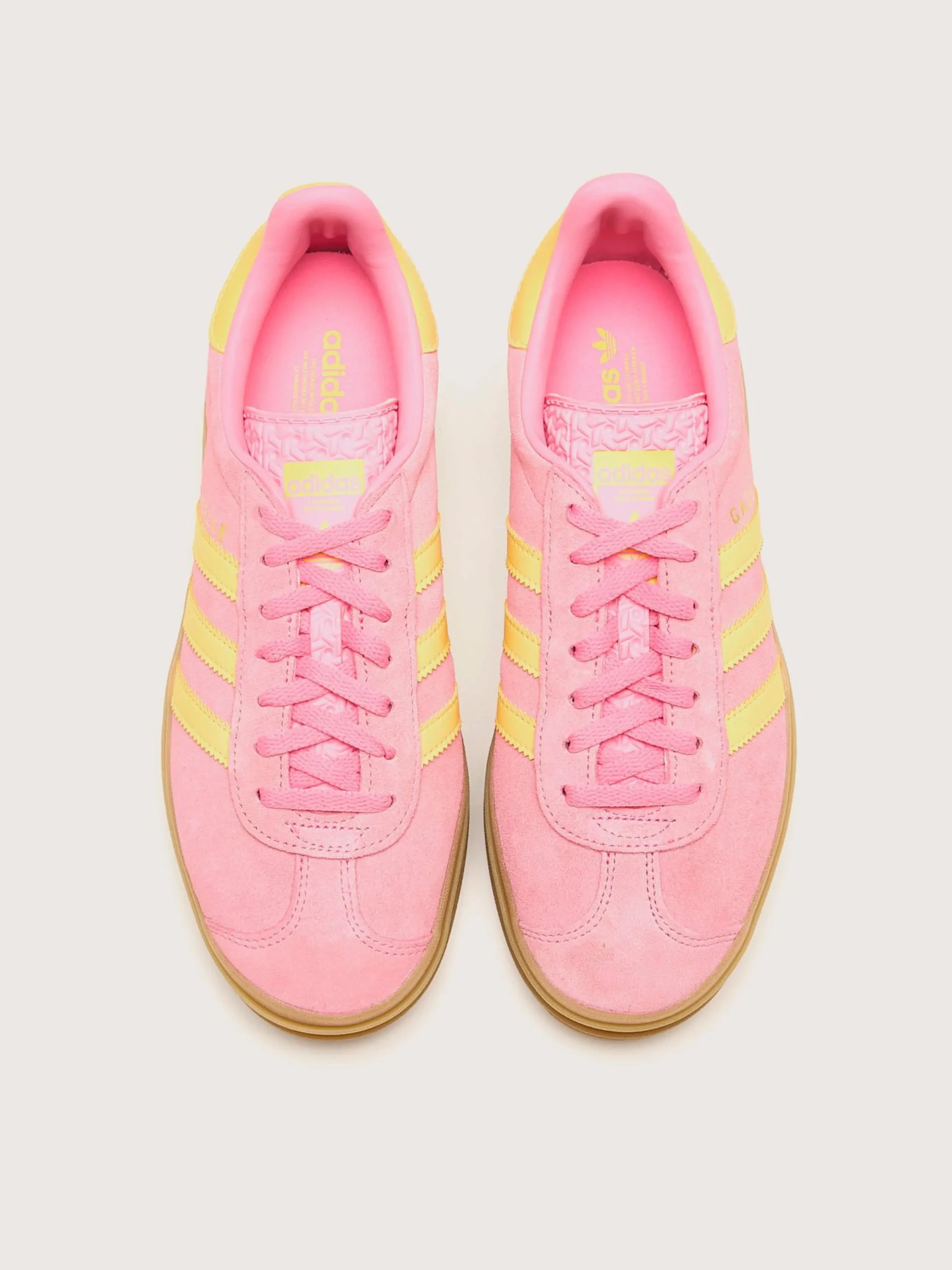 De Adidas Gazelle Bold heritage sneakers hebben een drielagen rubberen zool en een suède bovenwerk.