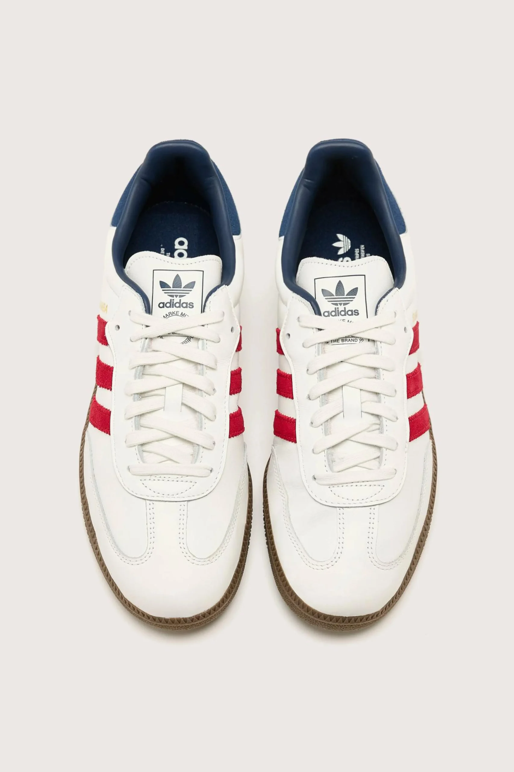 The Adidas Samba OG sneakers feature a suede and leather upper with a reinforced toe and iconic brand accents.
