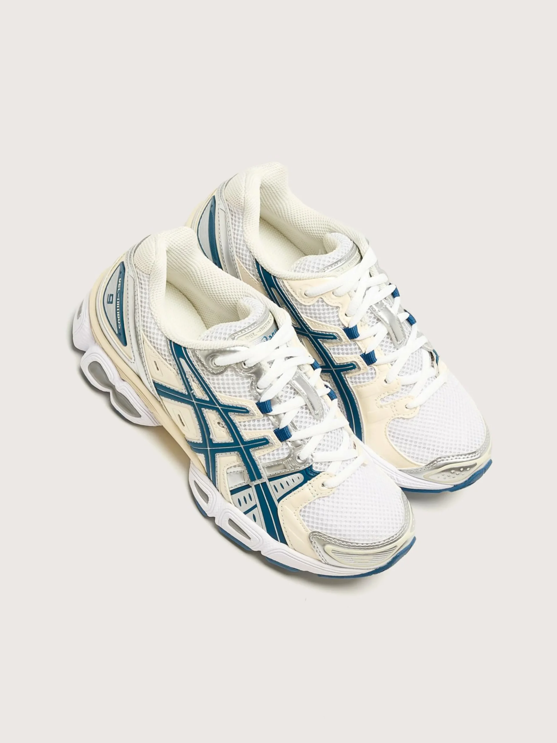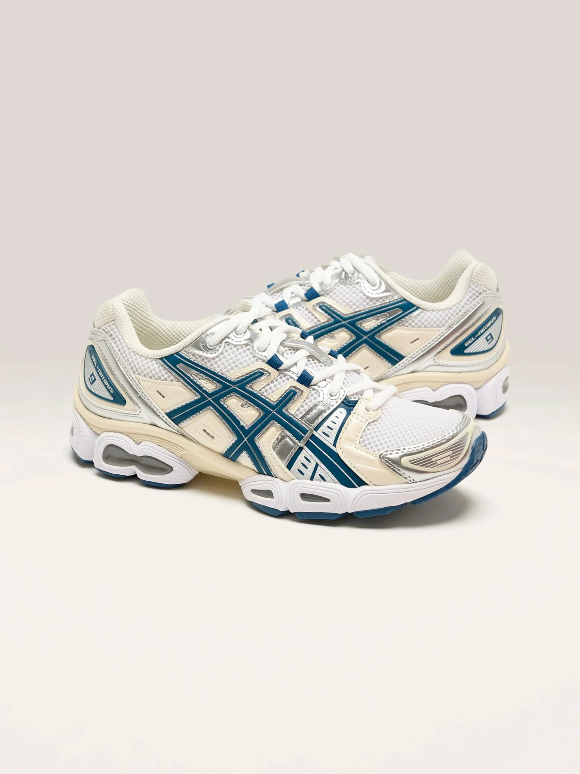 De Asics Gel-Nimbus 9 sneakers hebben een industrieel Y2K-silhouet met GEL-inzetstukken voor een zachte en stabiele pas.
