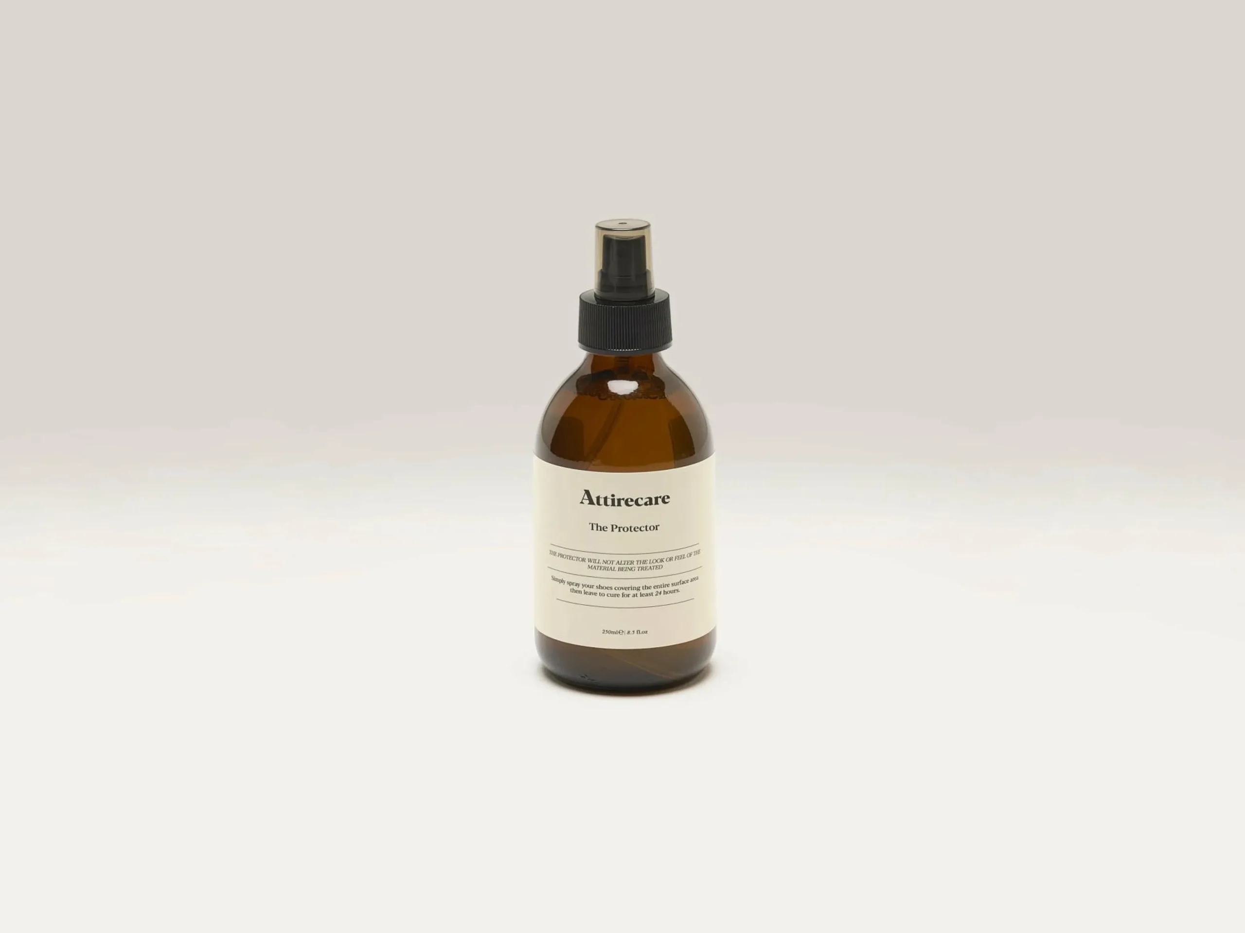 The Protector Spray is een onzichtbare, geurloze formule die vloeistoffen afstoot en schoenen en accessoires beschermt tegen vlekken.