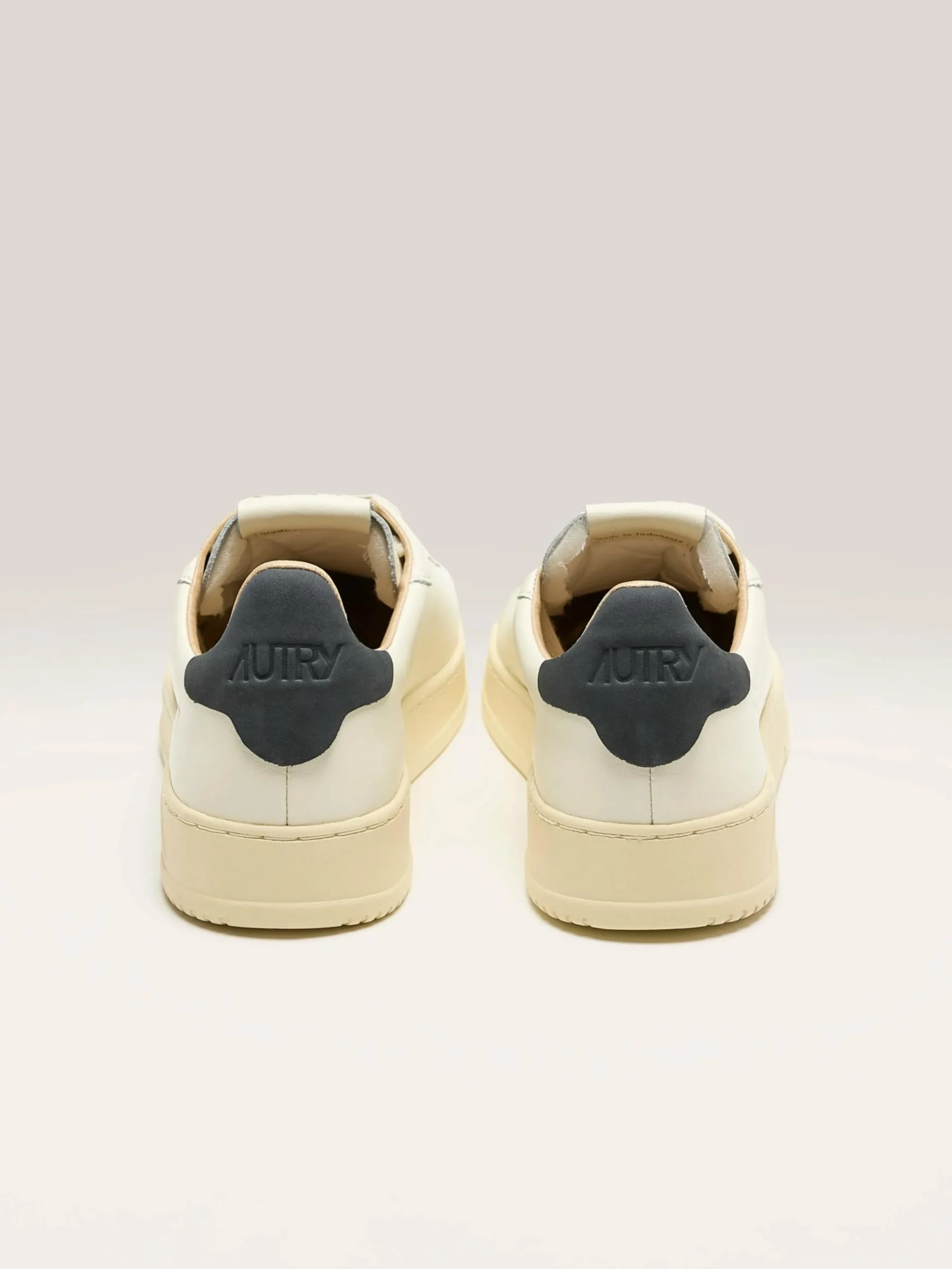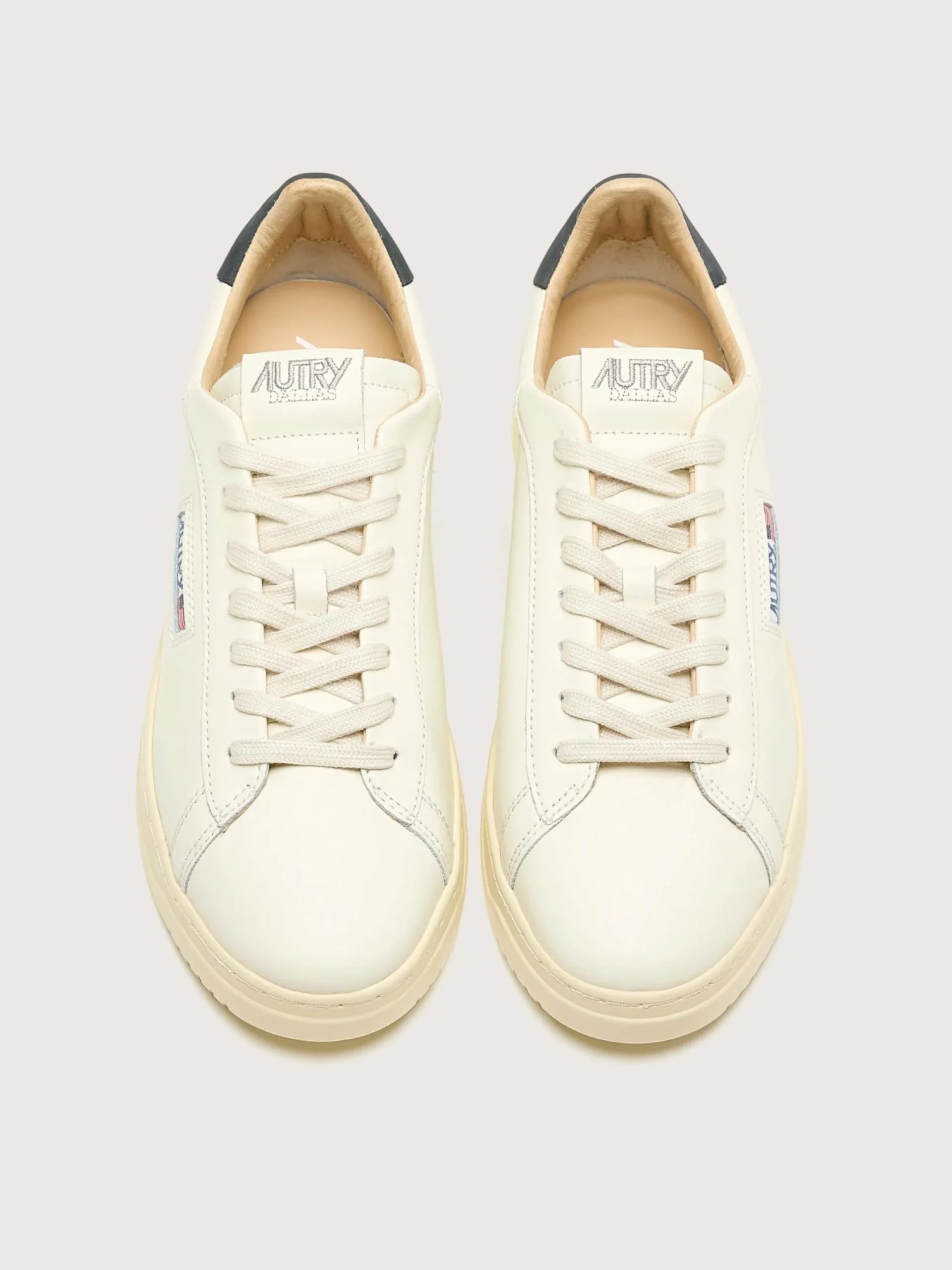 De Autry Dallas Low sneakers hebben een laag, compact profiel gemaakt van wit en blauw zacht nubuckleder.