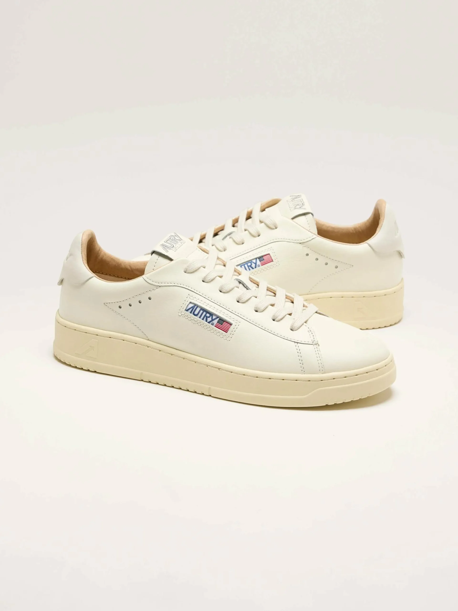 De Autry Dallas Low sneakers hebben een laag, compact profiel gemaakt van wit-op-wit zacht nubuckleder.
