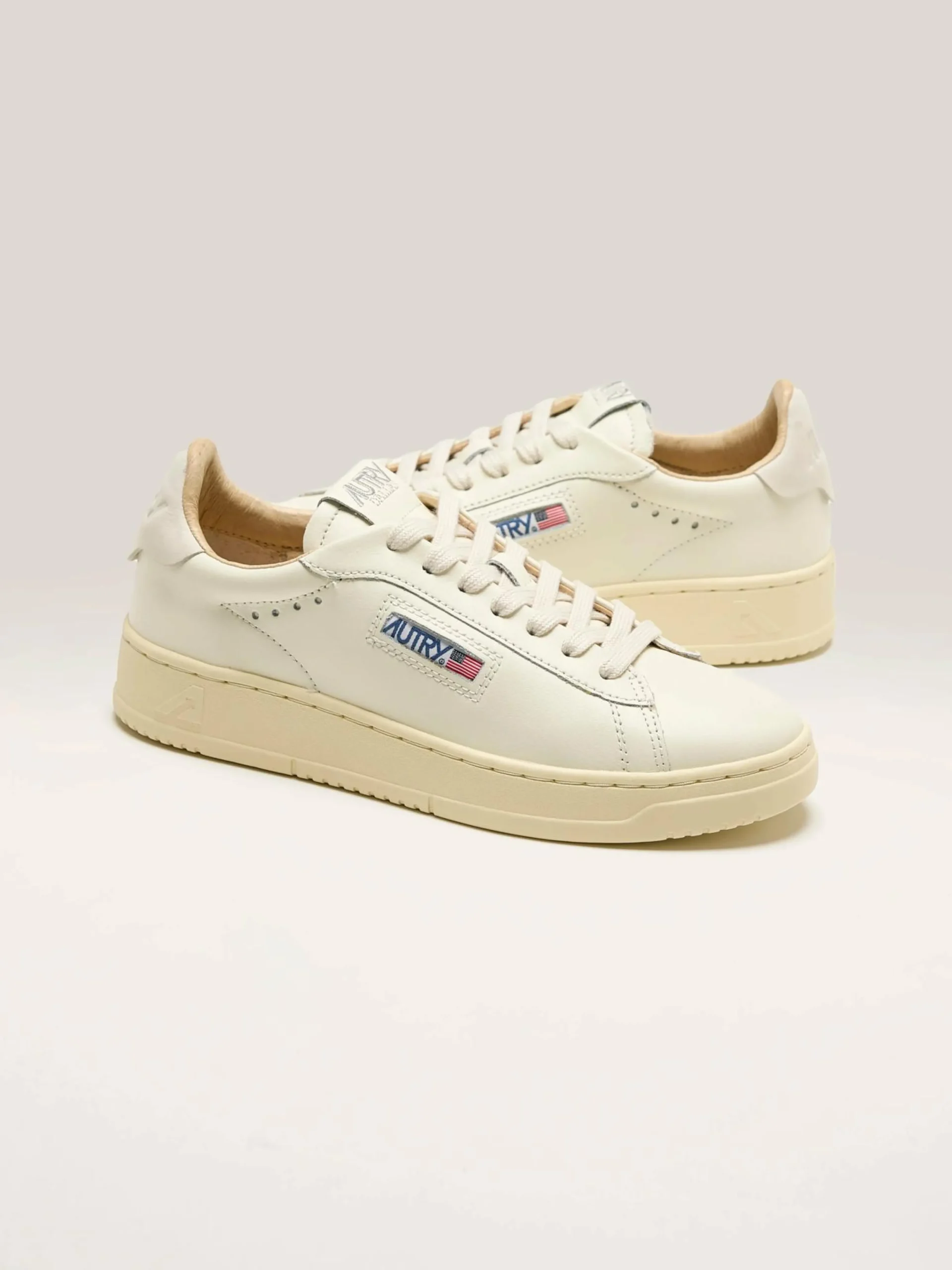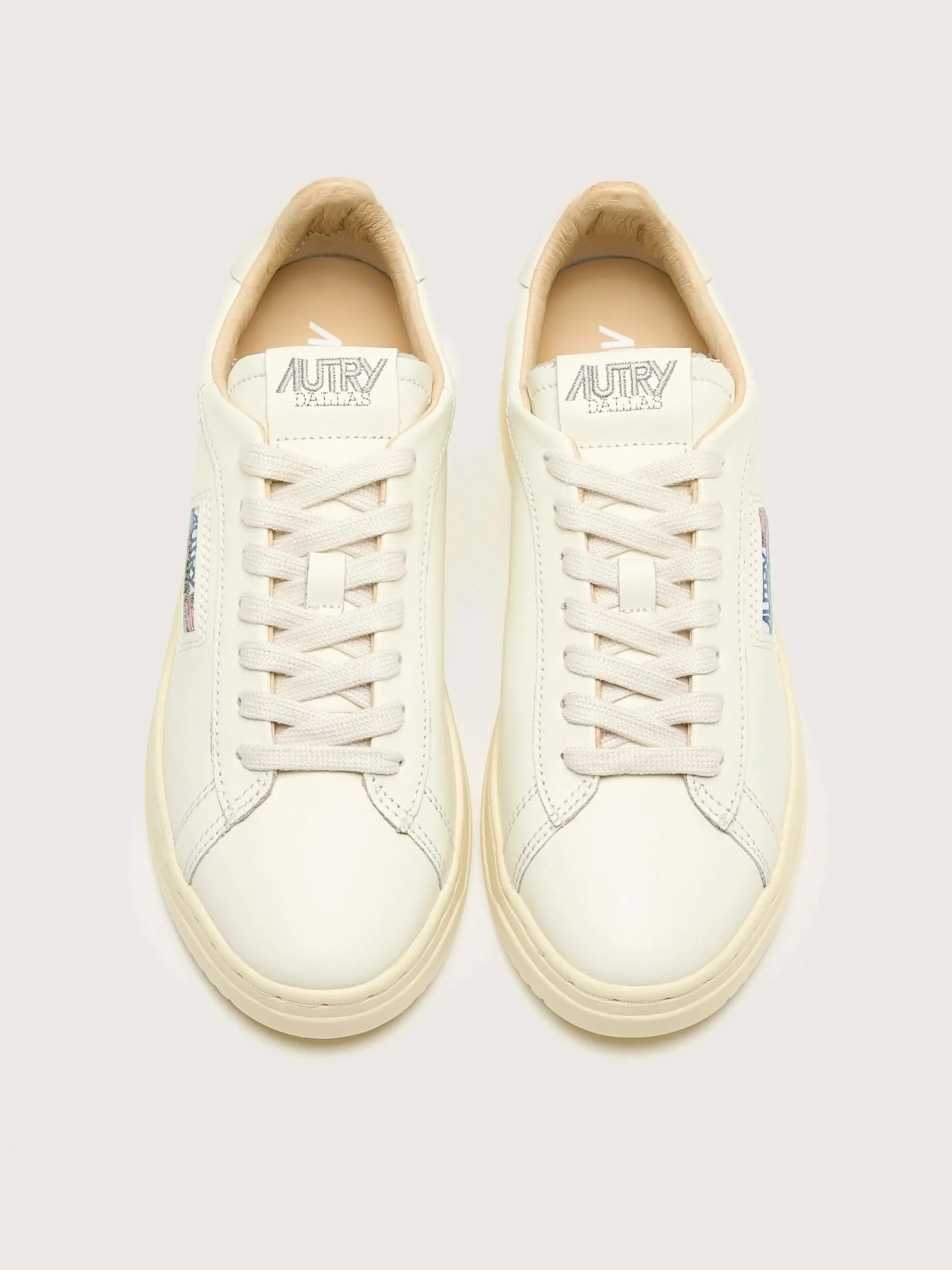 De Autry Dallas Low sneakers hebben een laag, compact profiel gemaakt van zacht wit-op-wit nubuckleder.