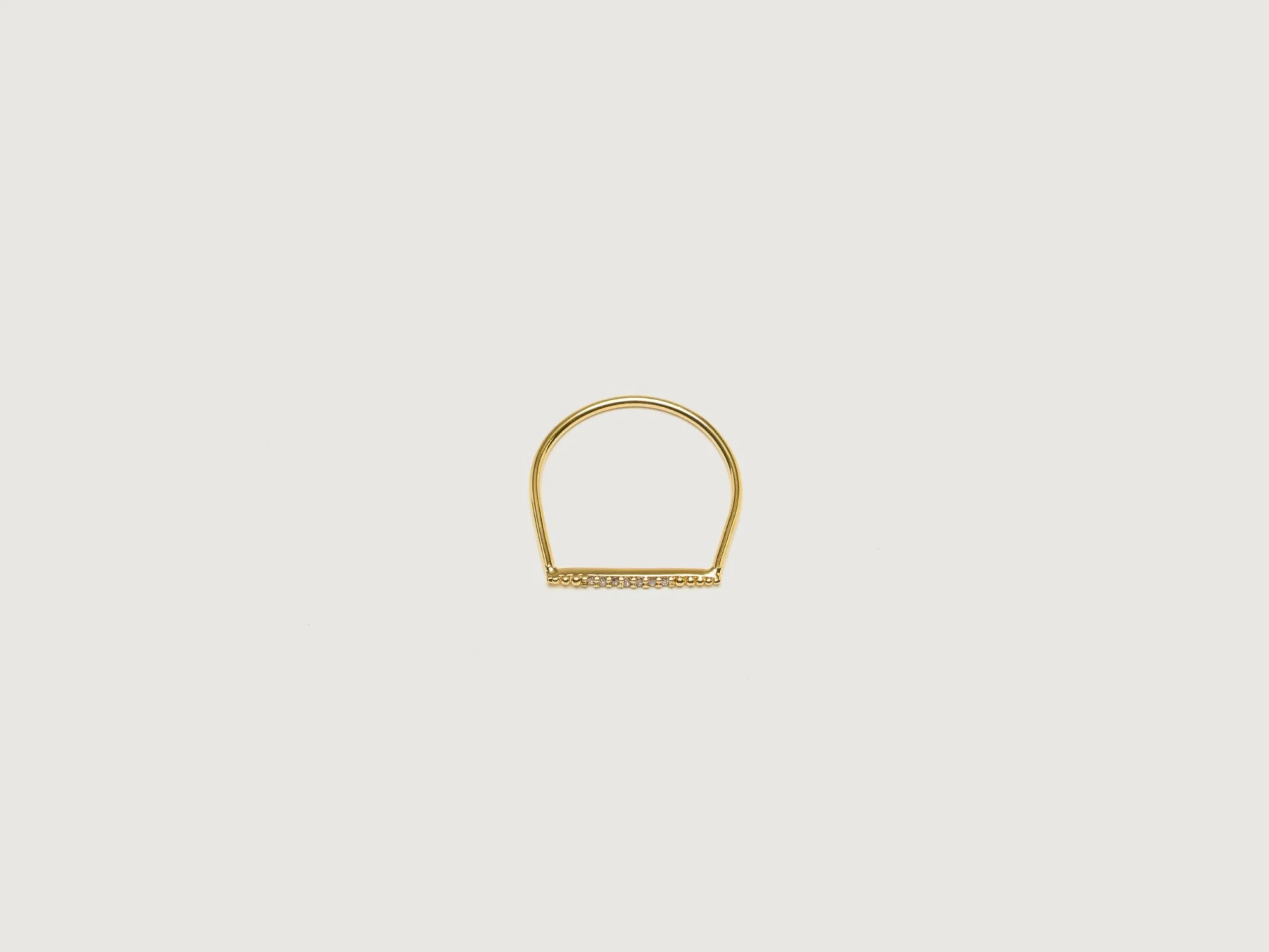 De BDM Studio Imai open ring is verstelbaar en gemaakt van 24k verguld messing, ingelegd met Swarovski-steentjes.