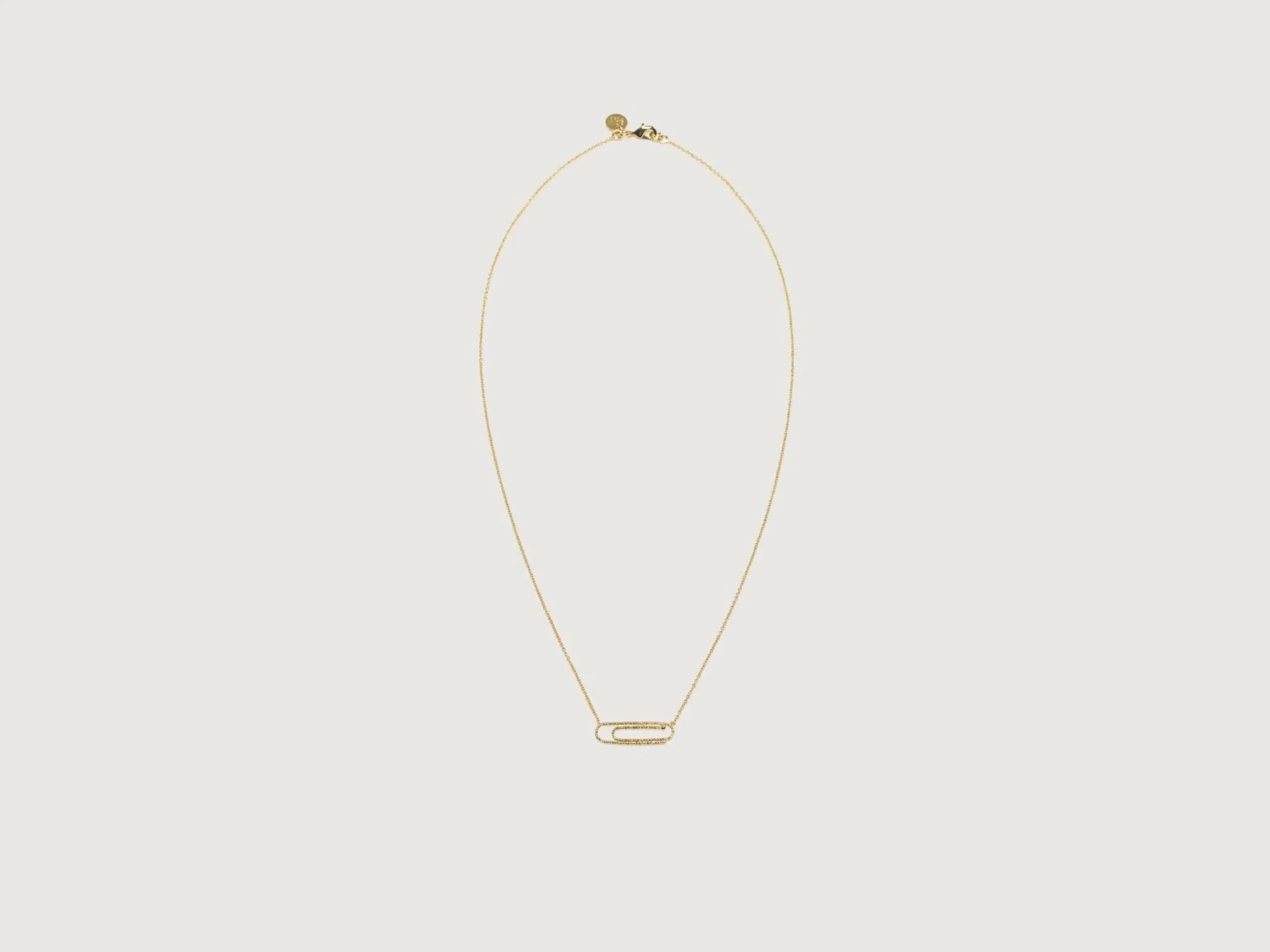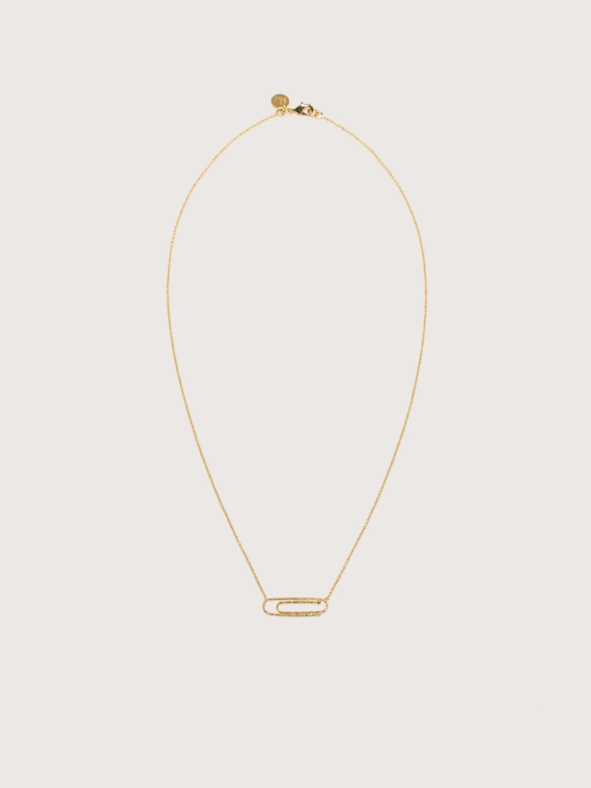 De BDM Studio Jane Short ketting is een delicate 24k vergulde schakel met een op paperclip geïnspireerde hanger.