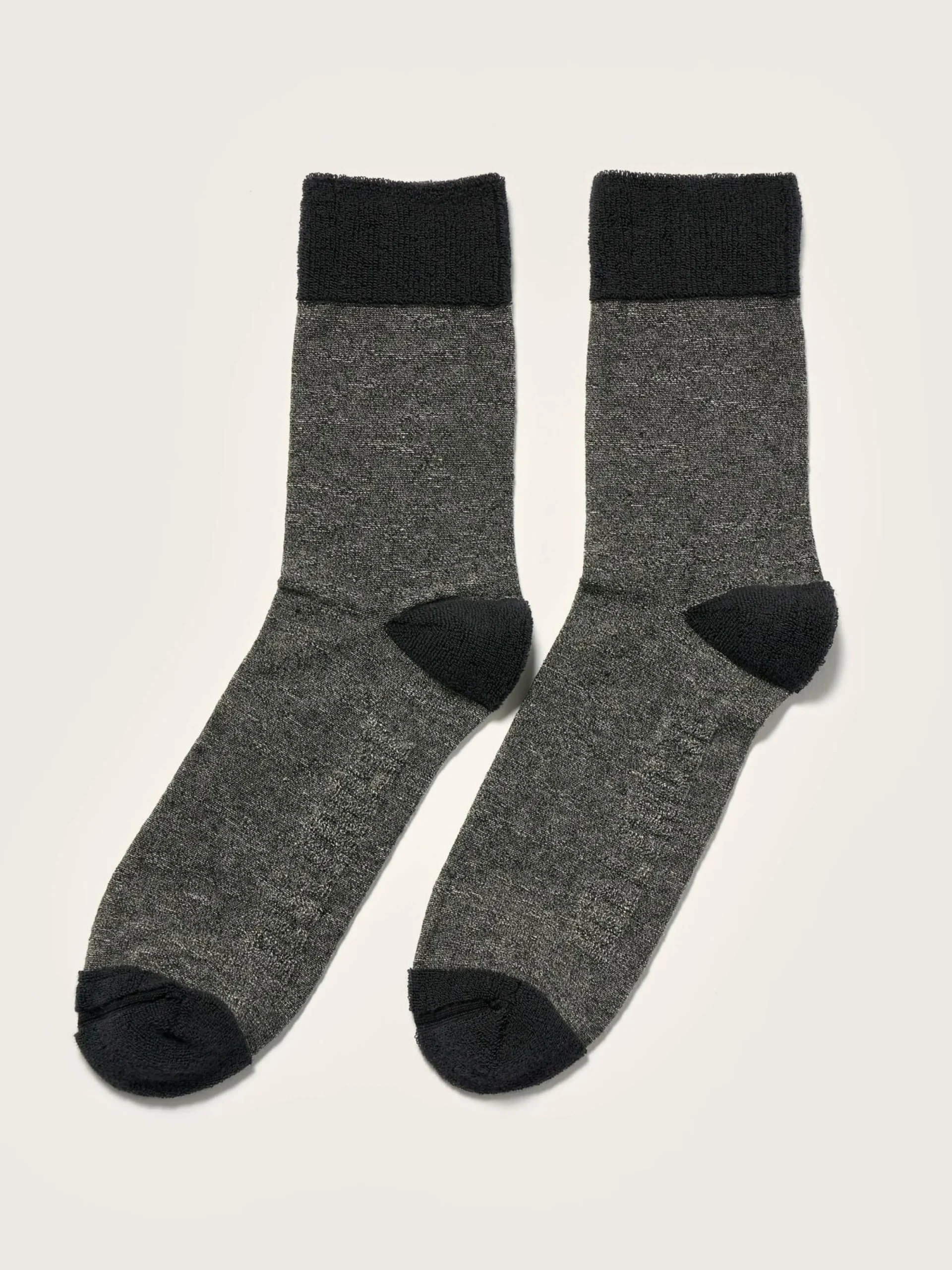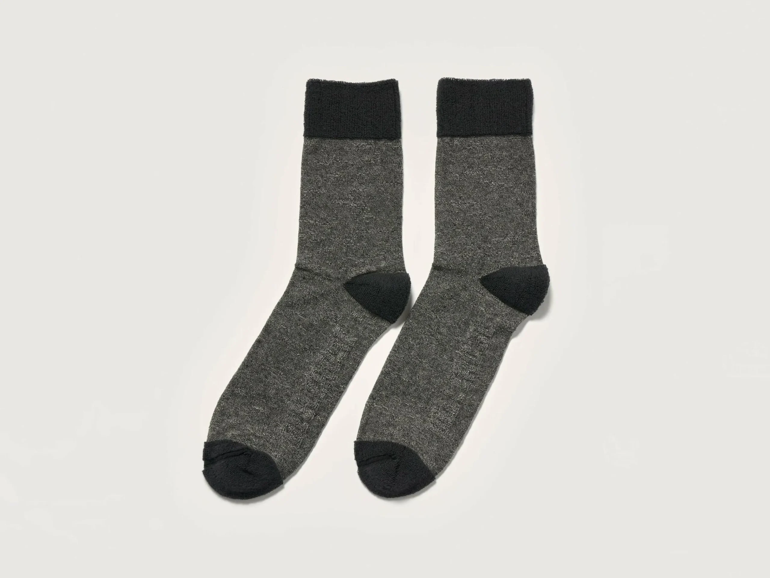 Klassieke, antracietkleurige sokken met Bellerose-signatuur van badstof op de voetzool.