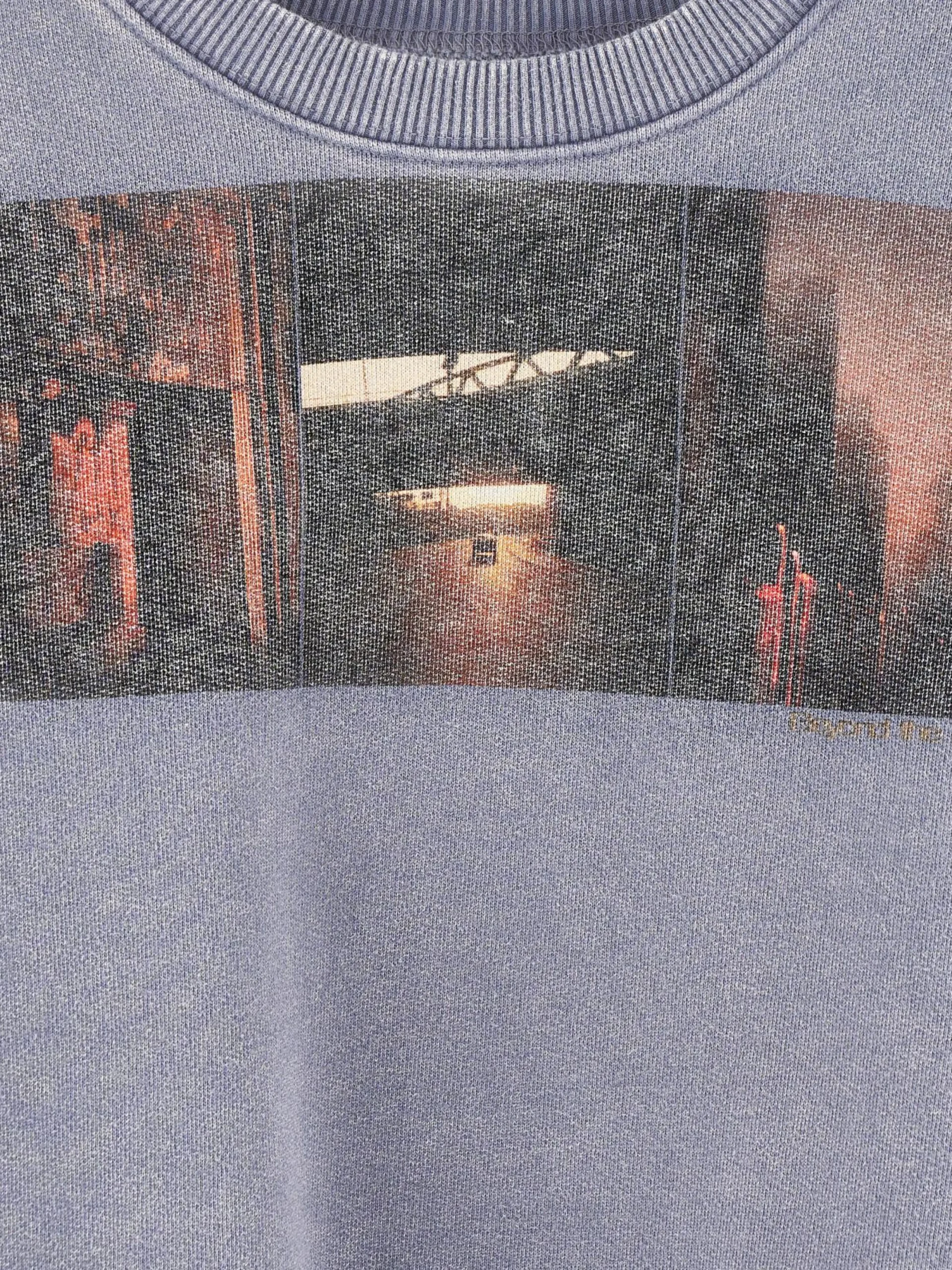 Comfortabel, grijs sweatshirt van geborstelde fleece met fototriptiek van Daniil Lavrovski.
