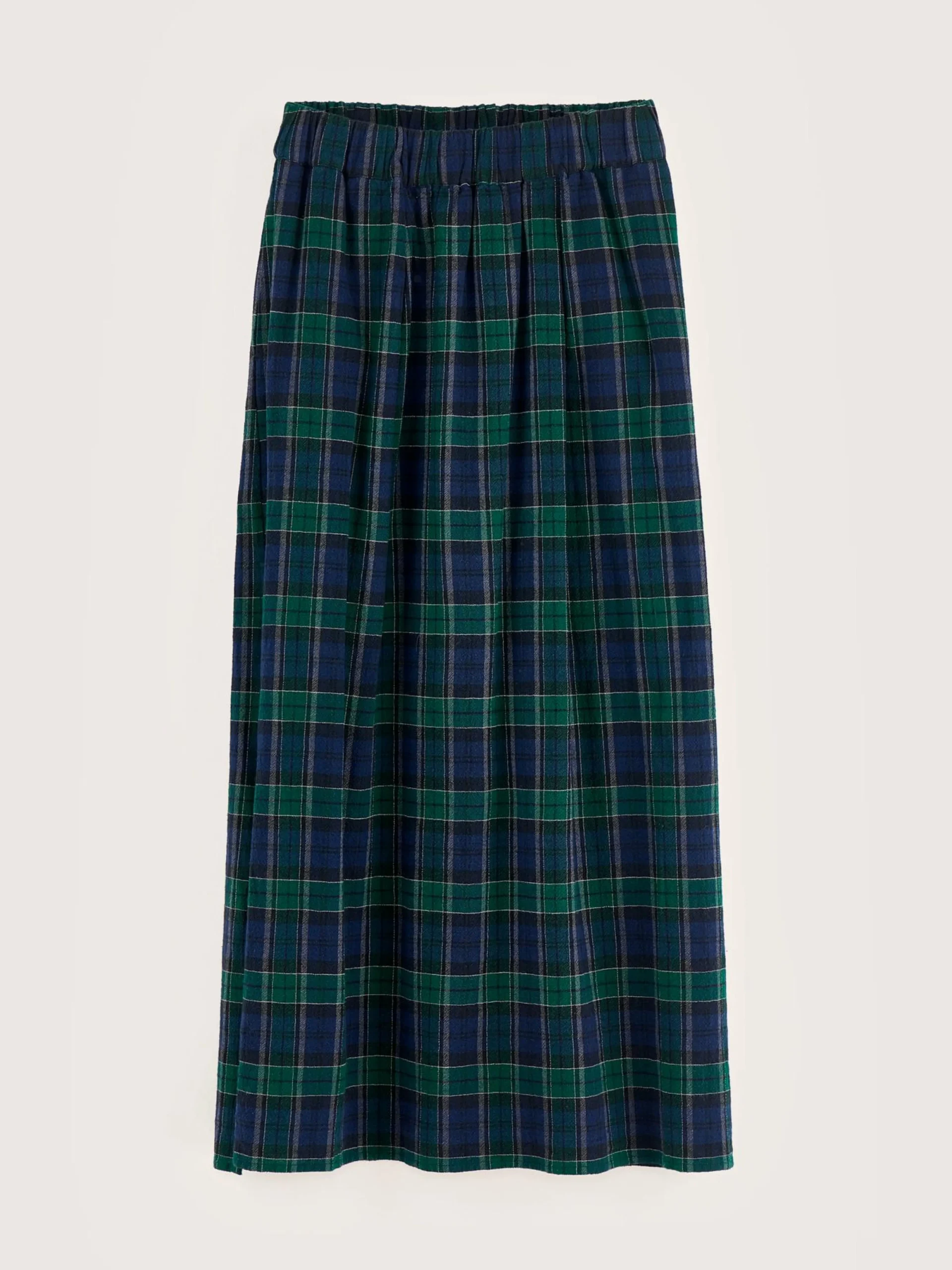 Lange rok met elastische taille, van katoenvoile met black watch ruiten.