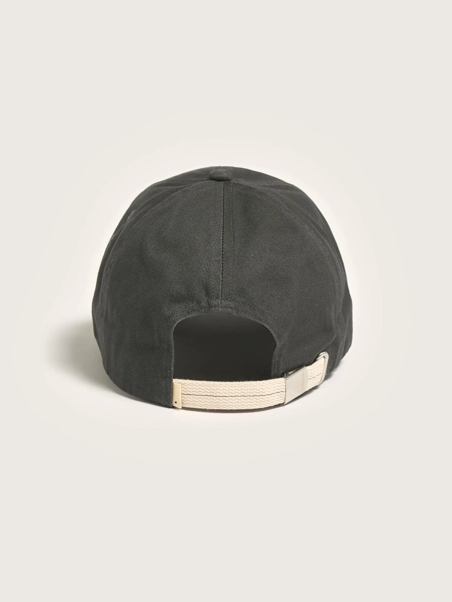 Klassieke 6-panel pet van grijs katoen met oranje Bellerose borduursel op de voorkant.