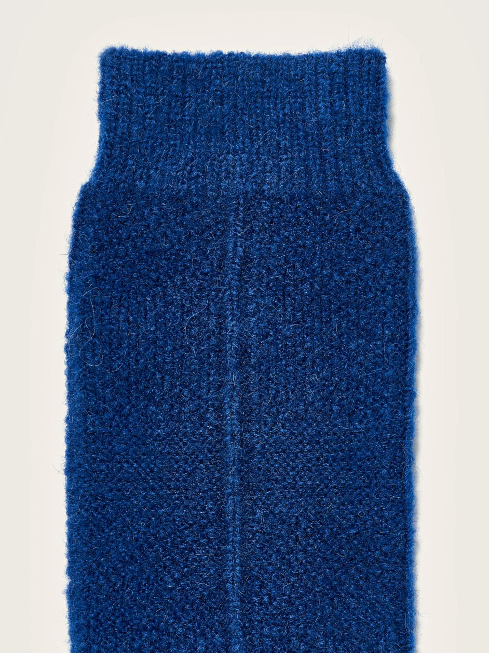 Klassieke, worker blauwe sokken met een ruitachtig patroon.