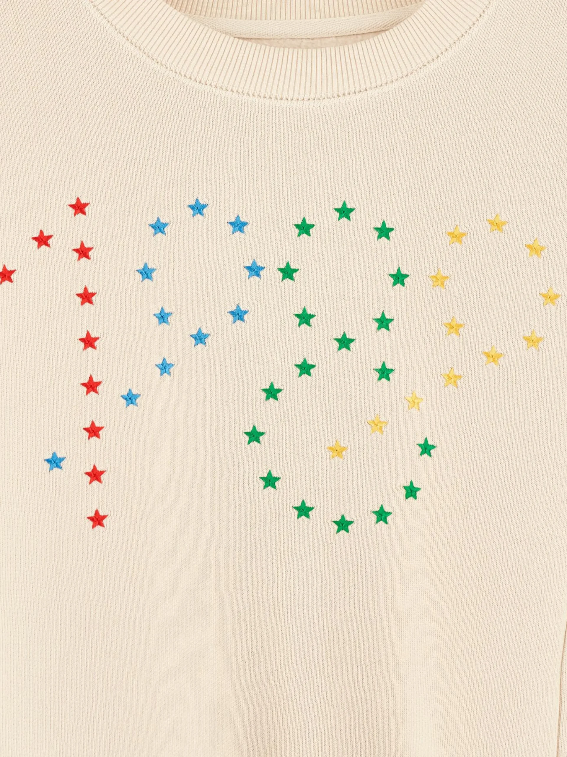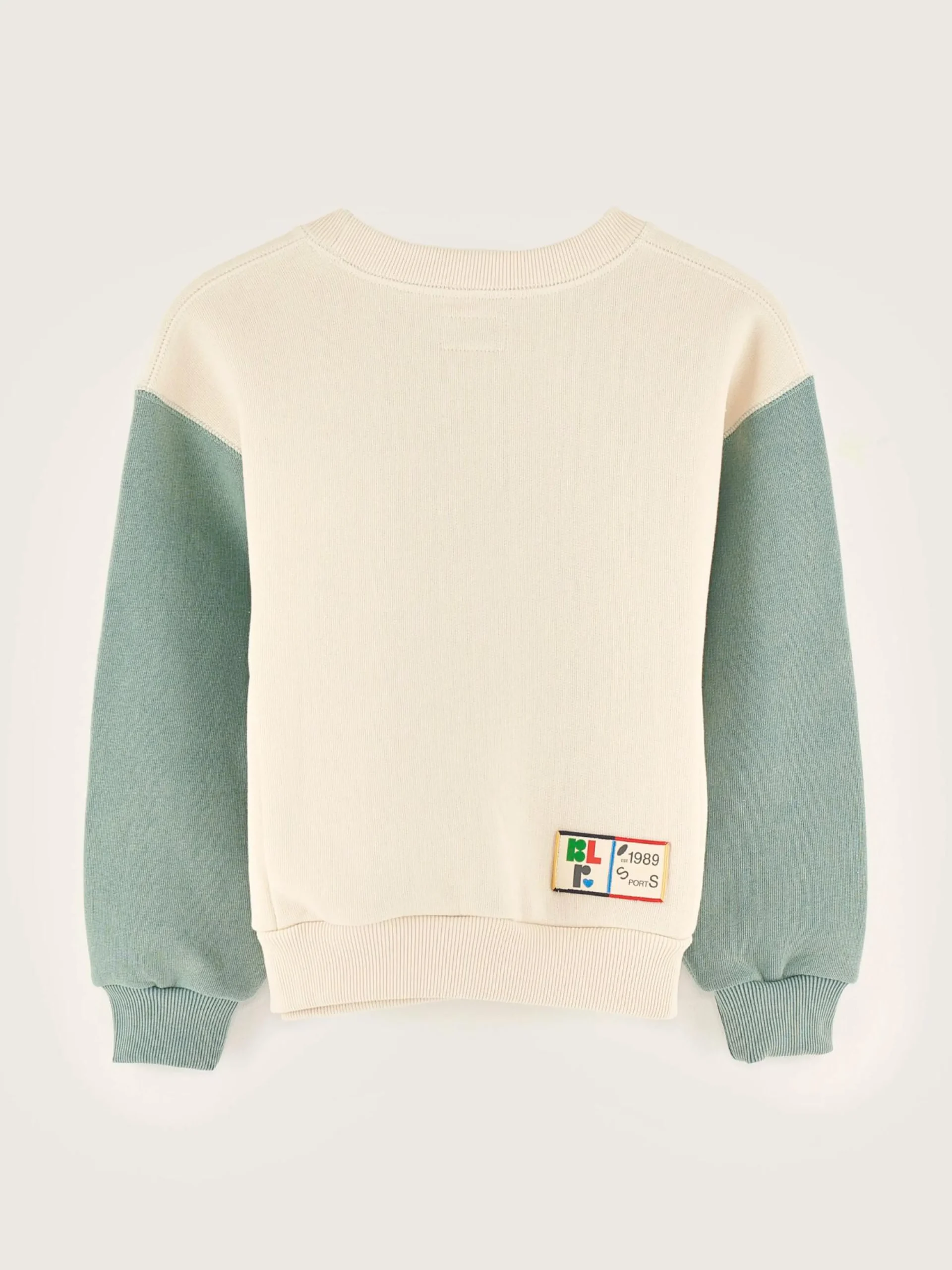 Comfortabel lichtbruin fleece sweatshirt met lange mouwen en vilten “JOY”-print.