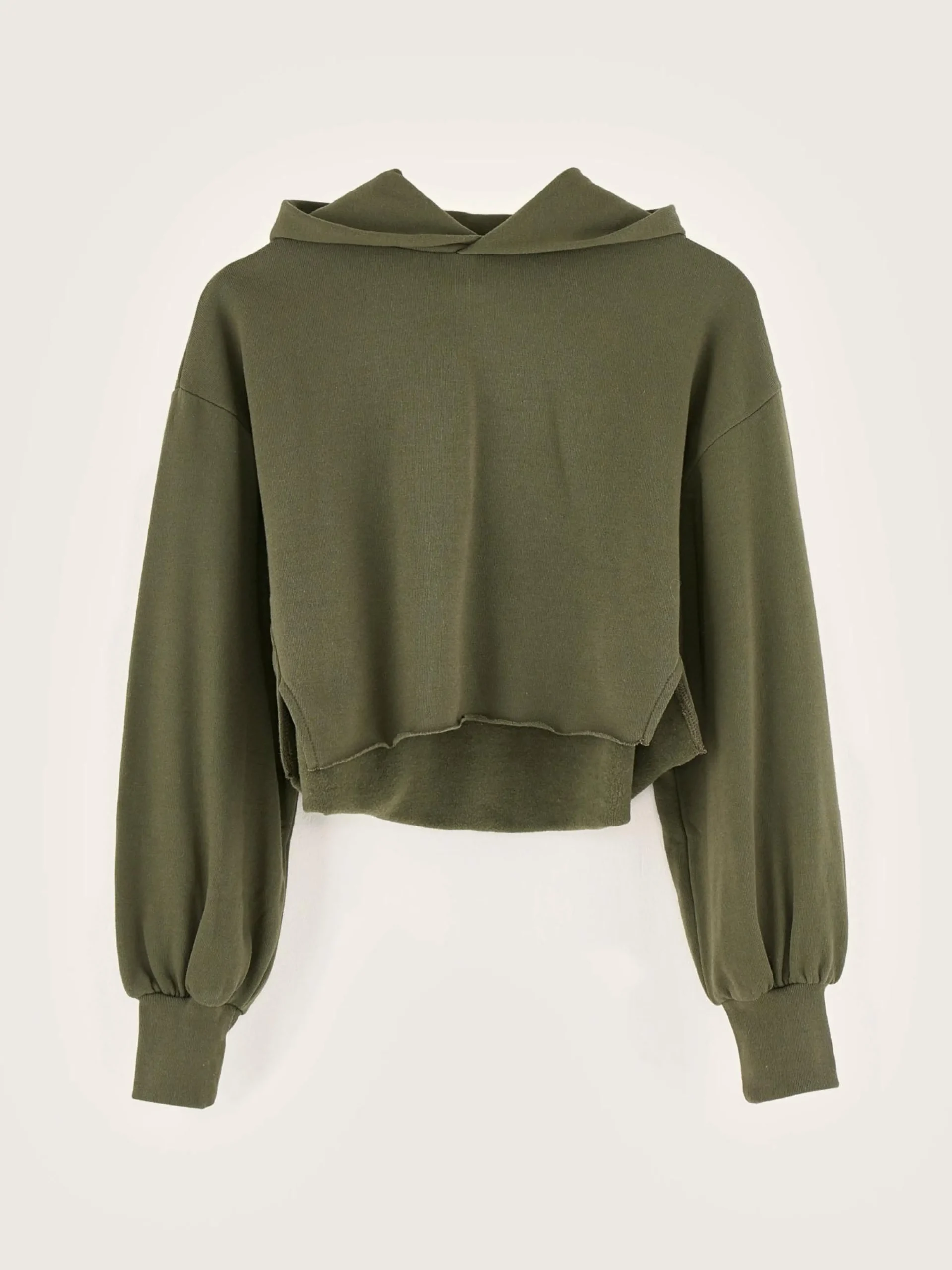 Losse, mosgroene cropped hoodie van sponsfleece.