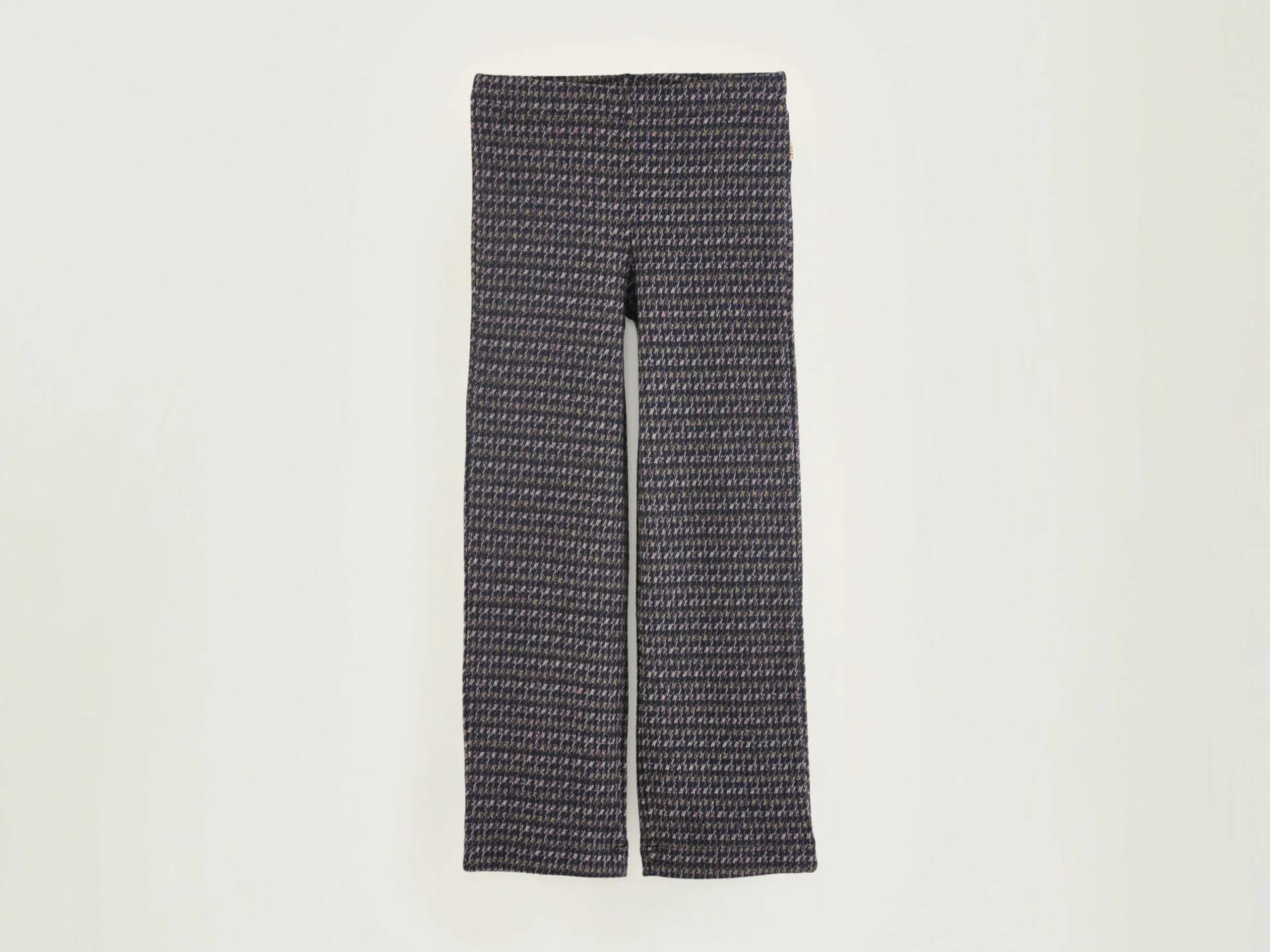 Flesgroene broek met flared pijpen en elastische tailleband.