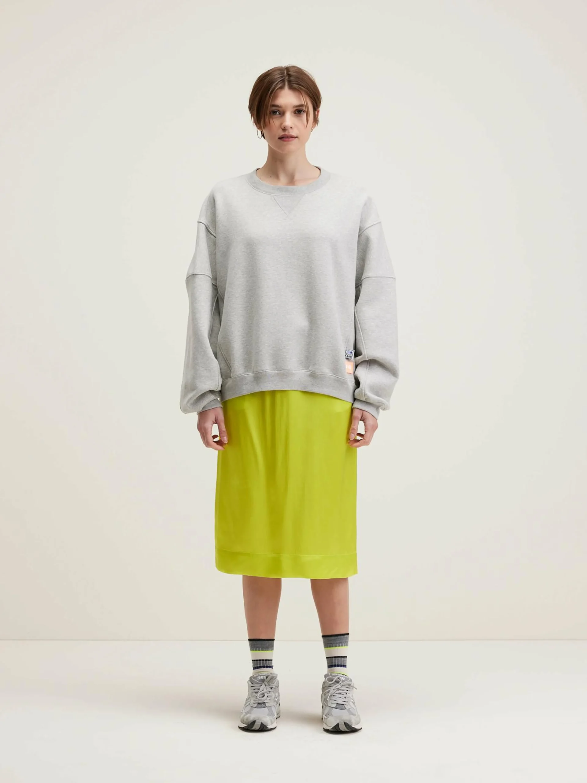 Oversized sweatshirt van lichtgrijze fleecestof, met een unieke paneelconstructie.