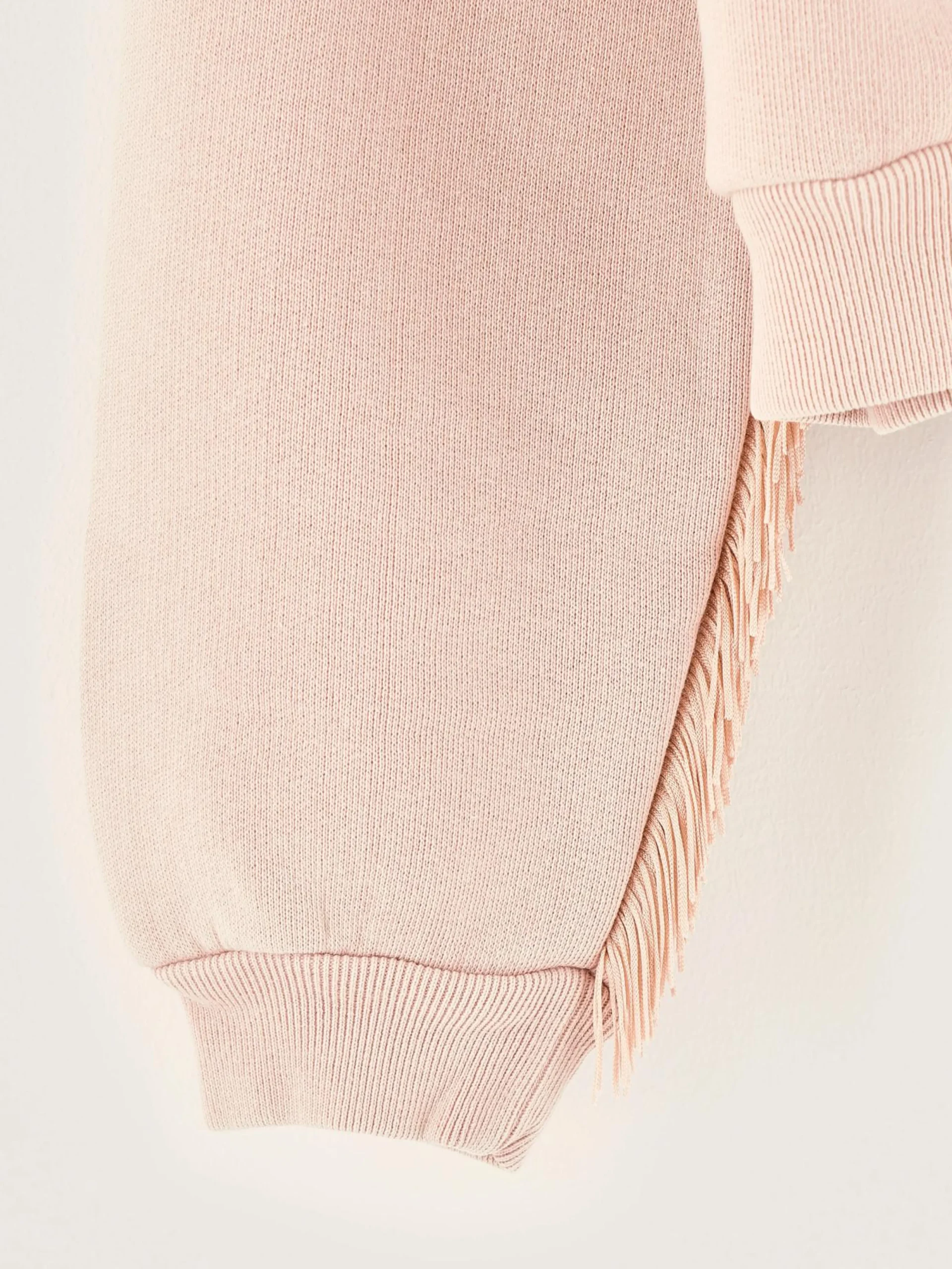 Blushroze, comfortabel sweatshirt met franjes en een opstaande kraag.