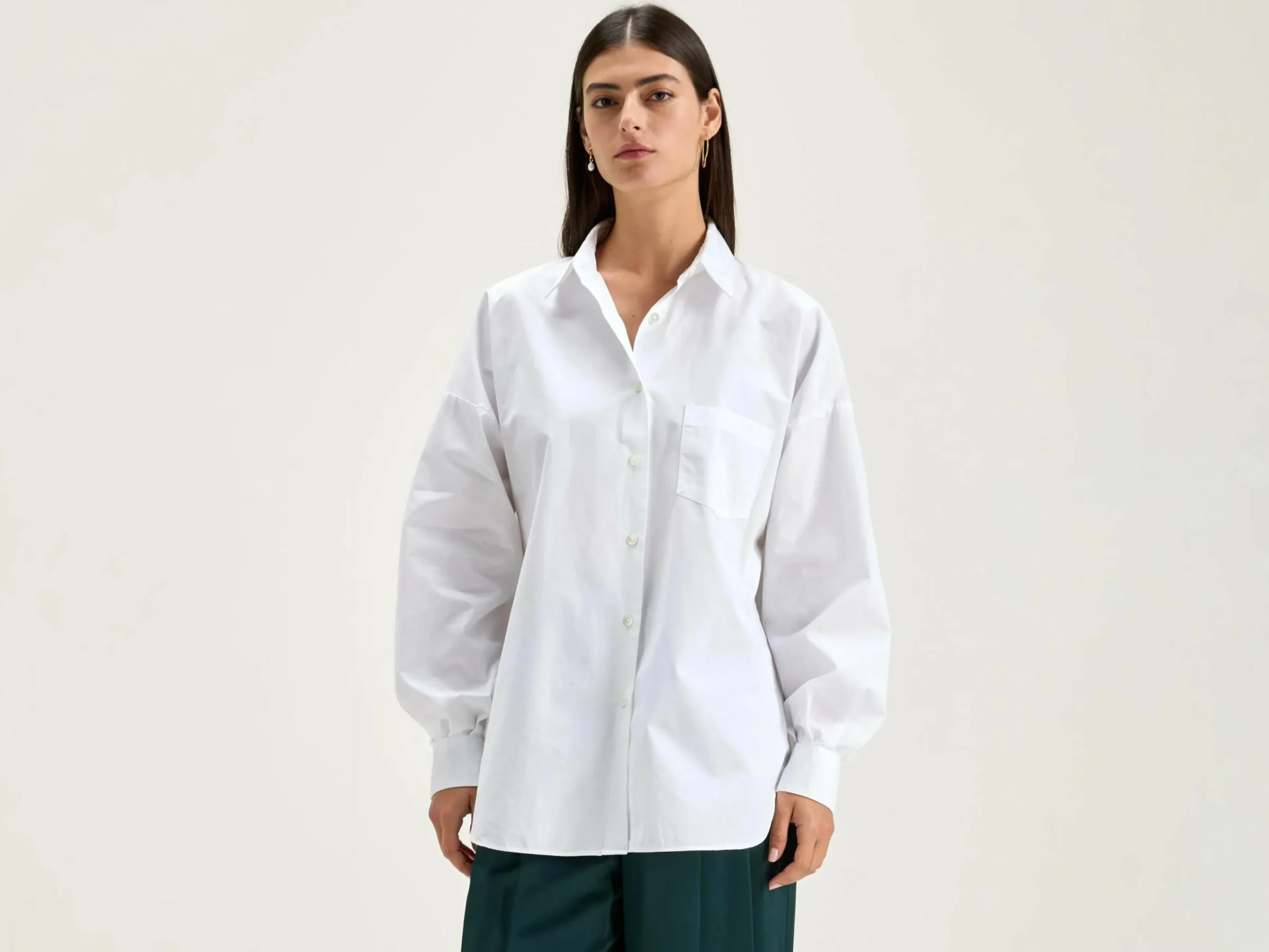 Fris wit oversized hemd met kraag, een lage schouderlijn en een borstzak, van katoenpopeline.