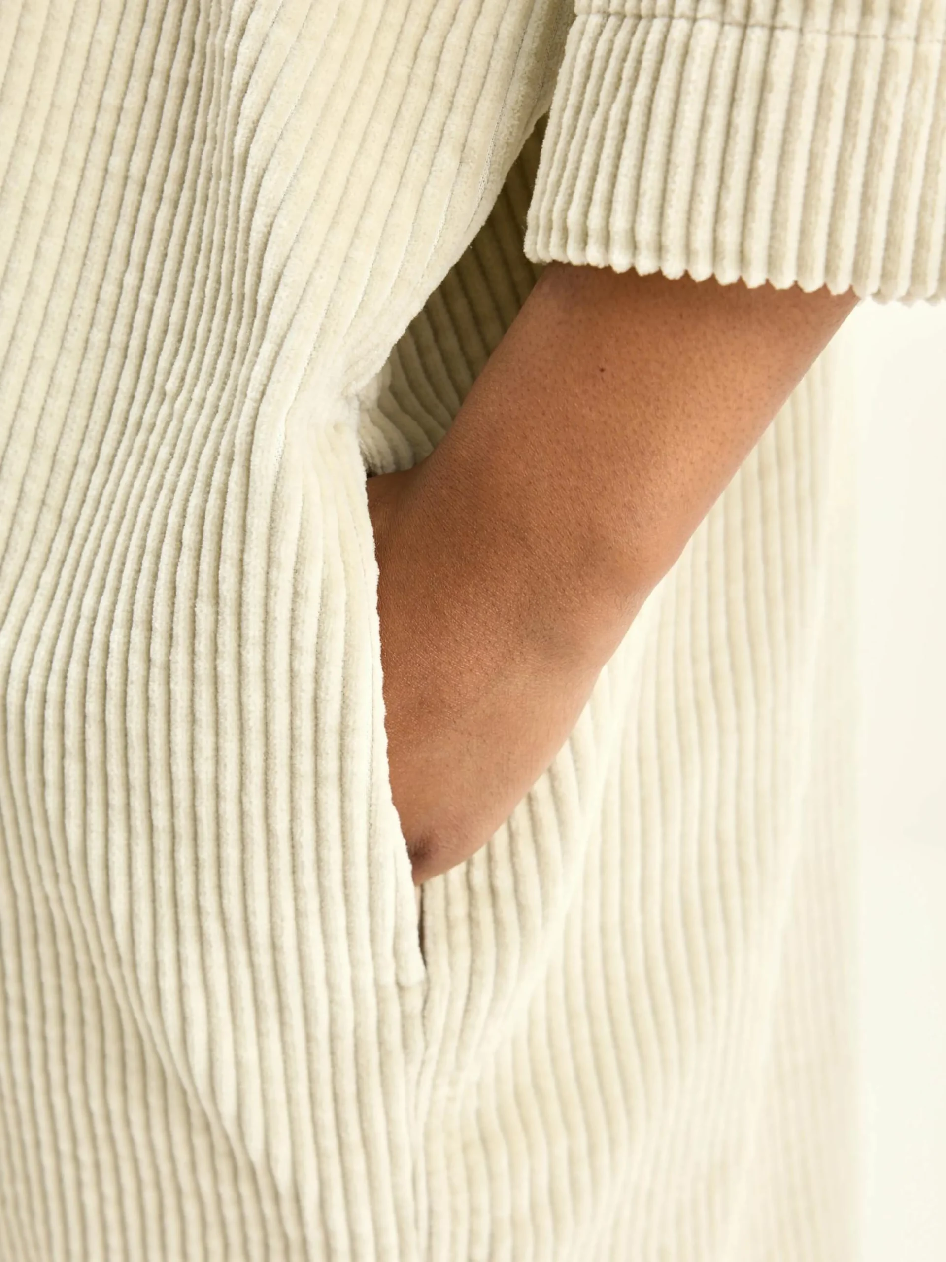 Ecru, oversizede hemdjurk van katoencorduroy met brede rib.