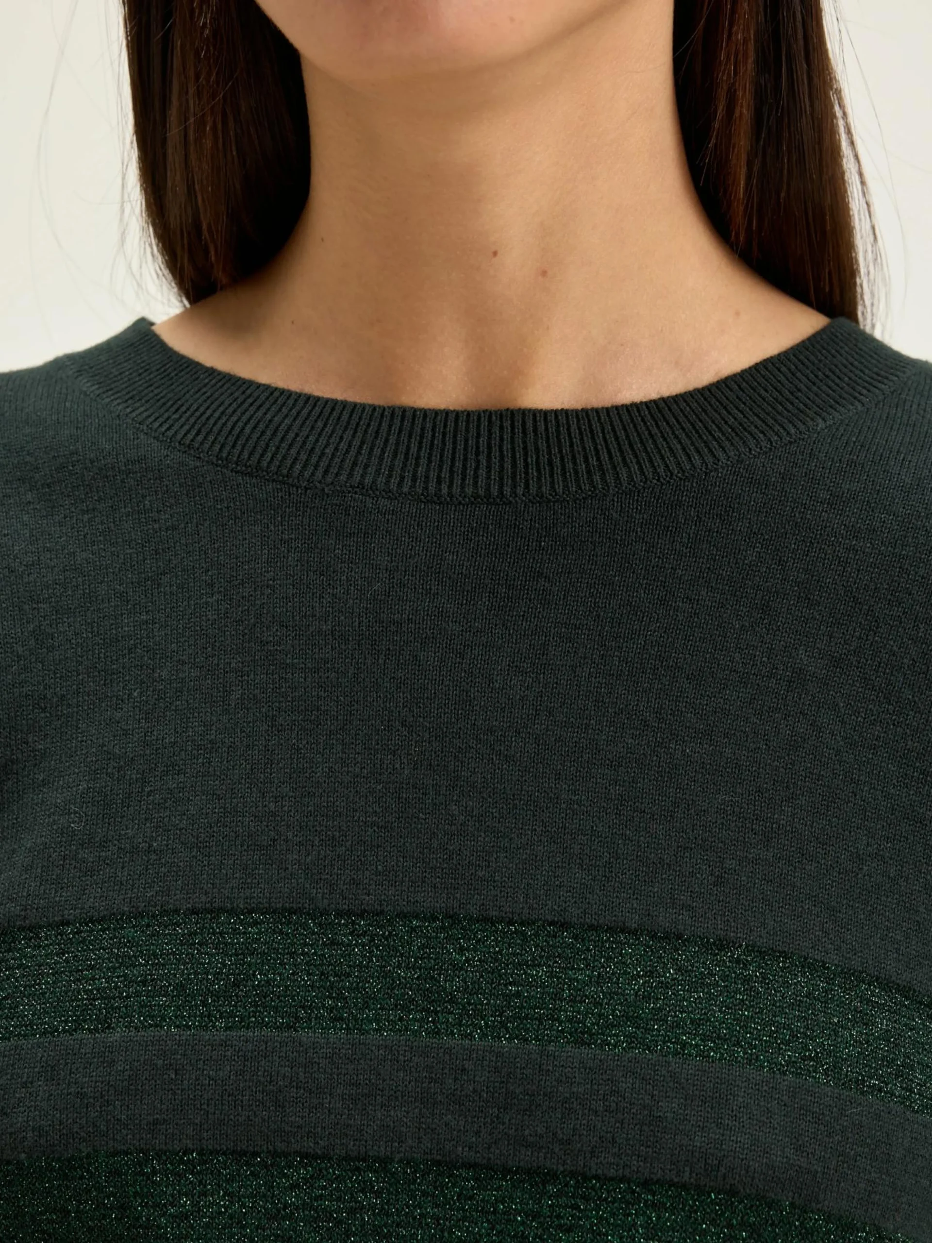 Klassieke trui met lange mouwen en contrasterende lurexstrepen.