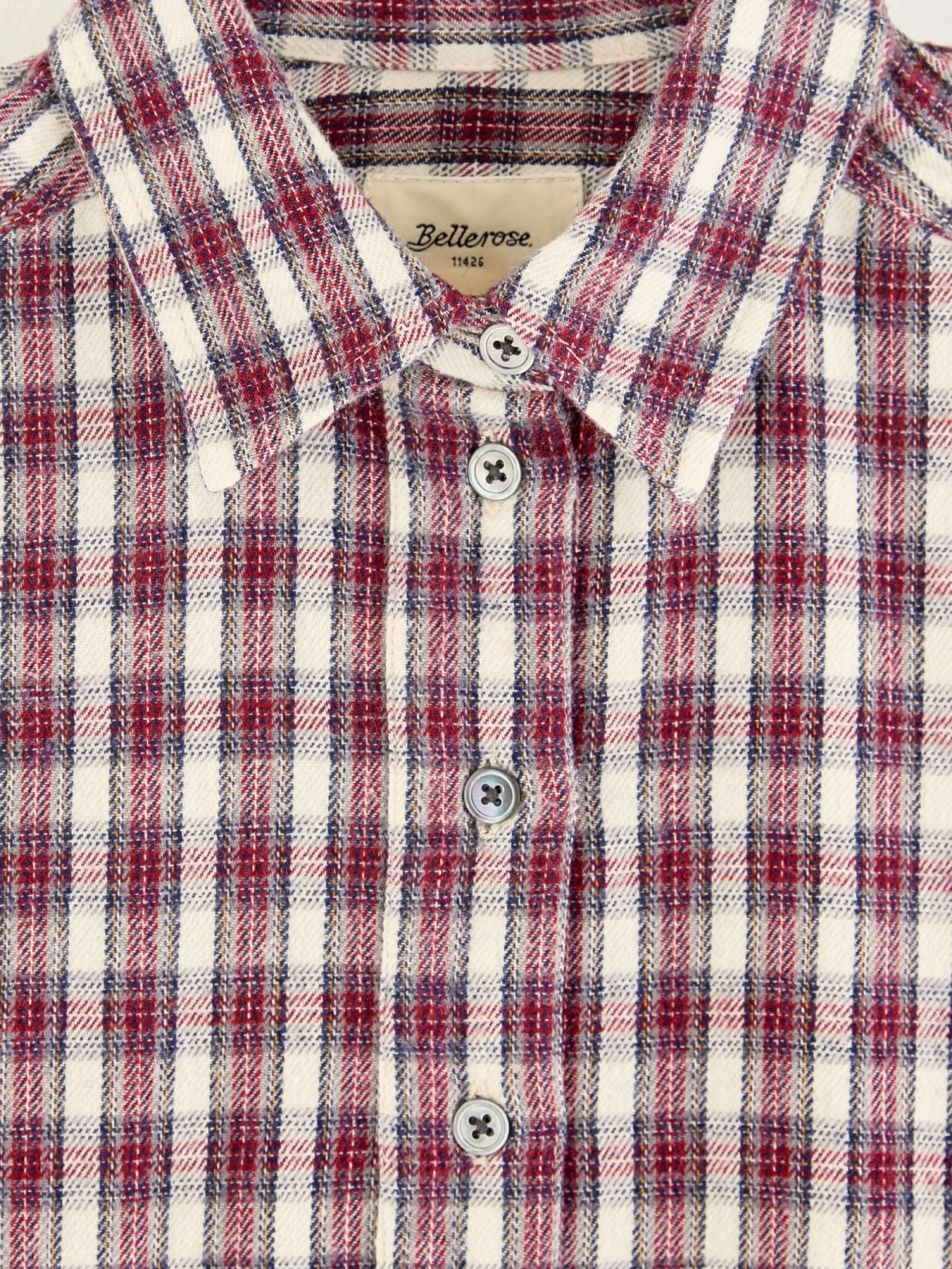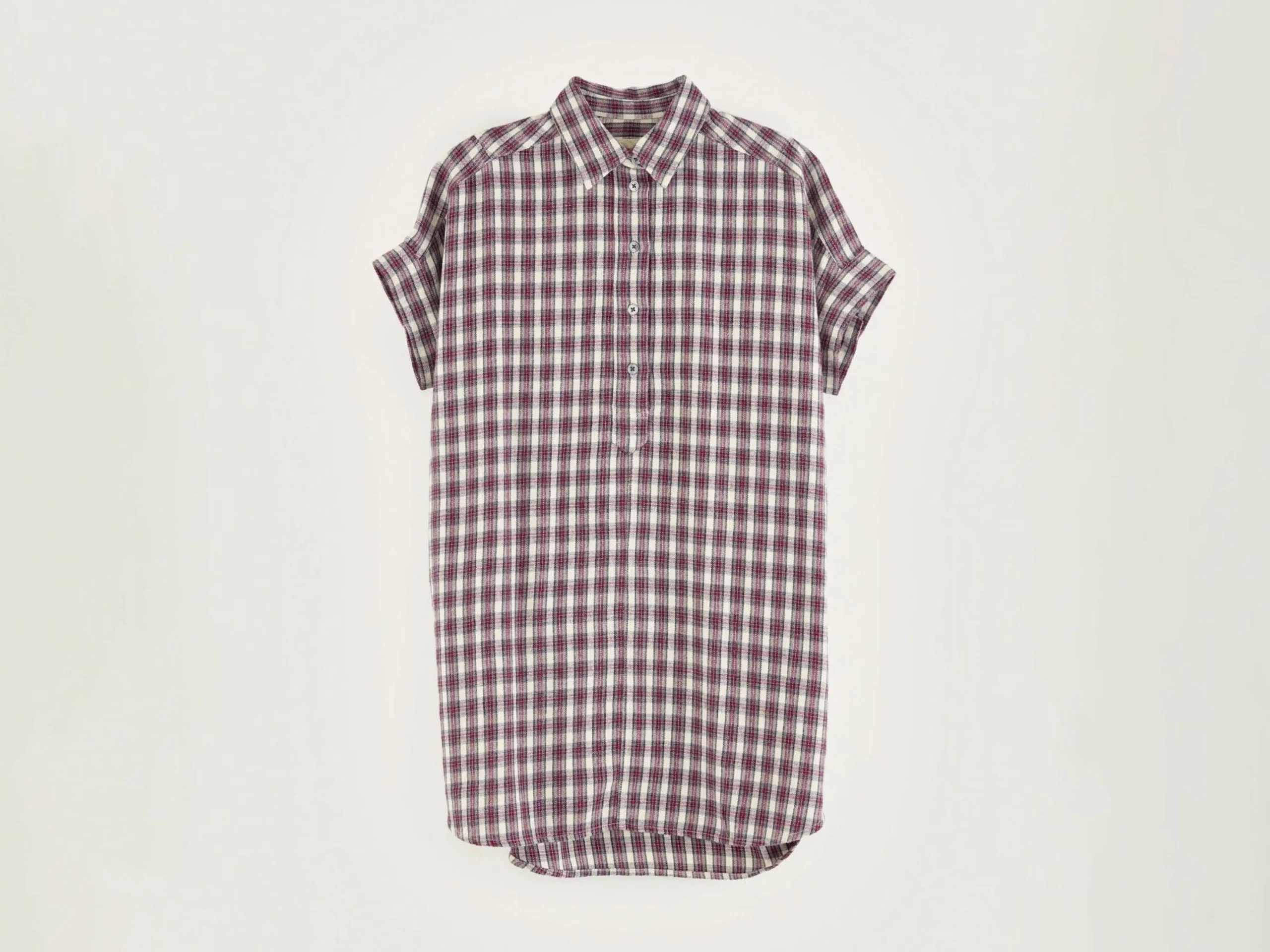 Minihemdjurk met opgerolde mouwen in geborstelde katoen met wijnrood en wit ruiten.