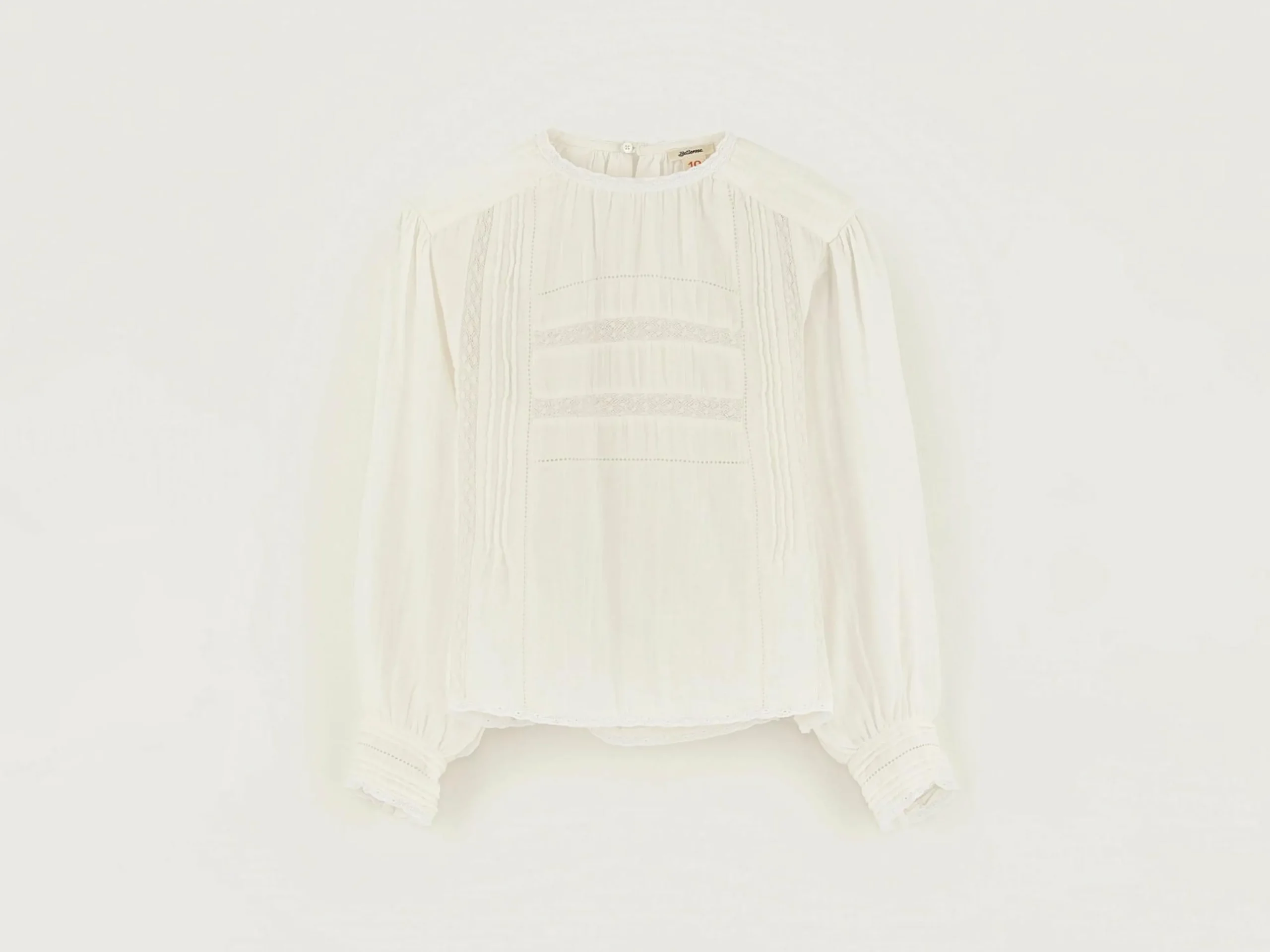 Romantische ecru blouse van katoen, met ingezette kanten details.