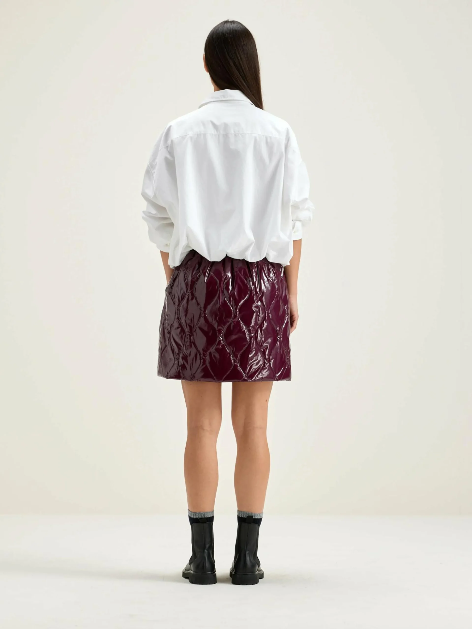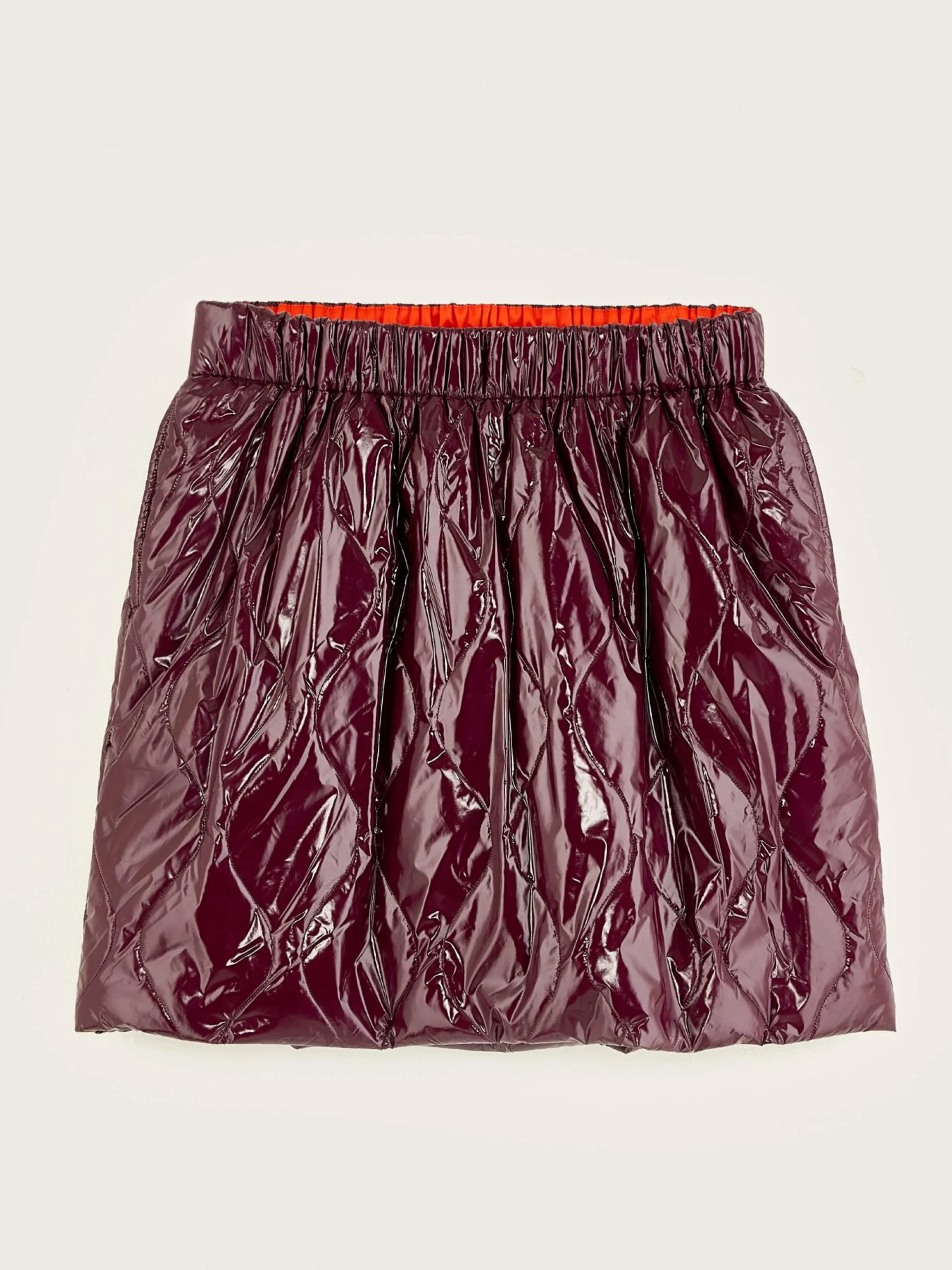 Gewatteerde minirok met elastische taille, van glanzende bordeaux ripstop stof.