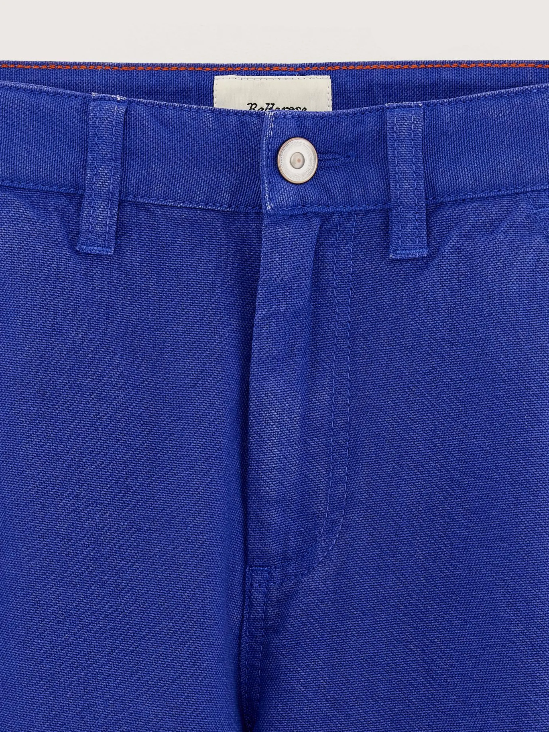 Kobaltblauwe klassieke broek met normale taille en rechte pijpen, van kantoencanvas.