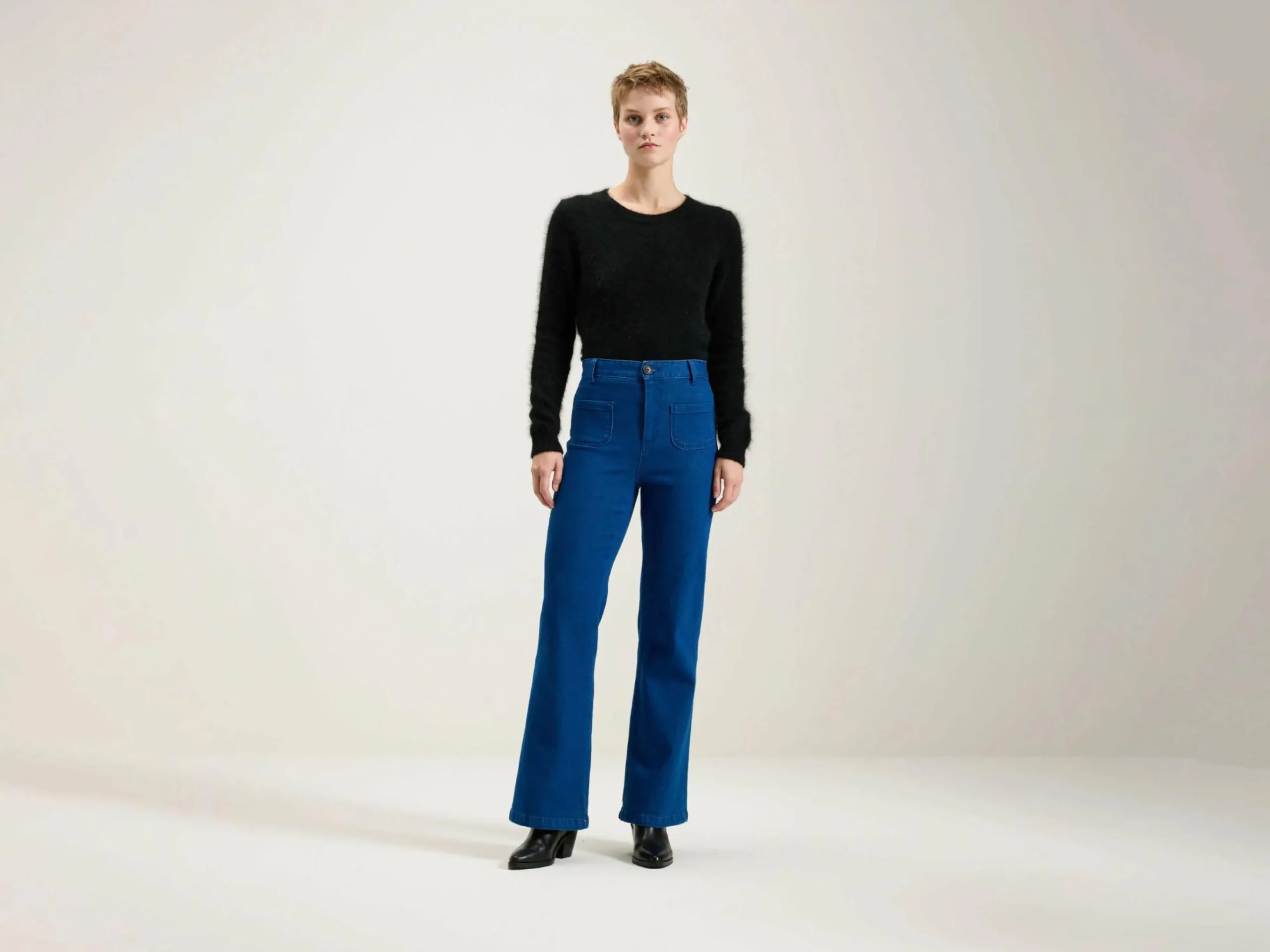 - Hoge taille, flared pijpen