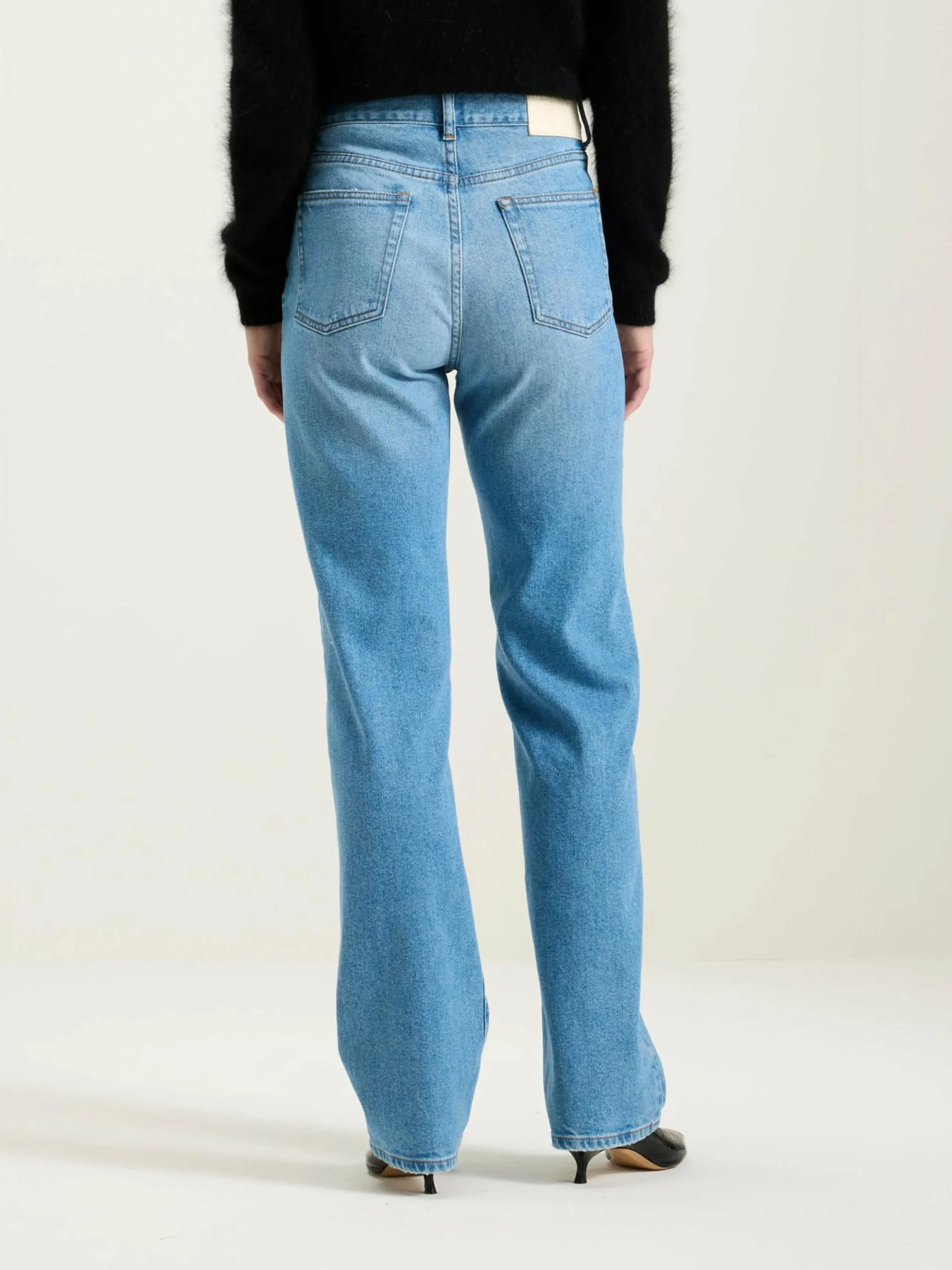 - High-waist, aansluitend aan de dijen en rechte pijpen