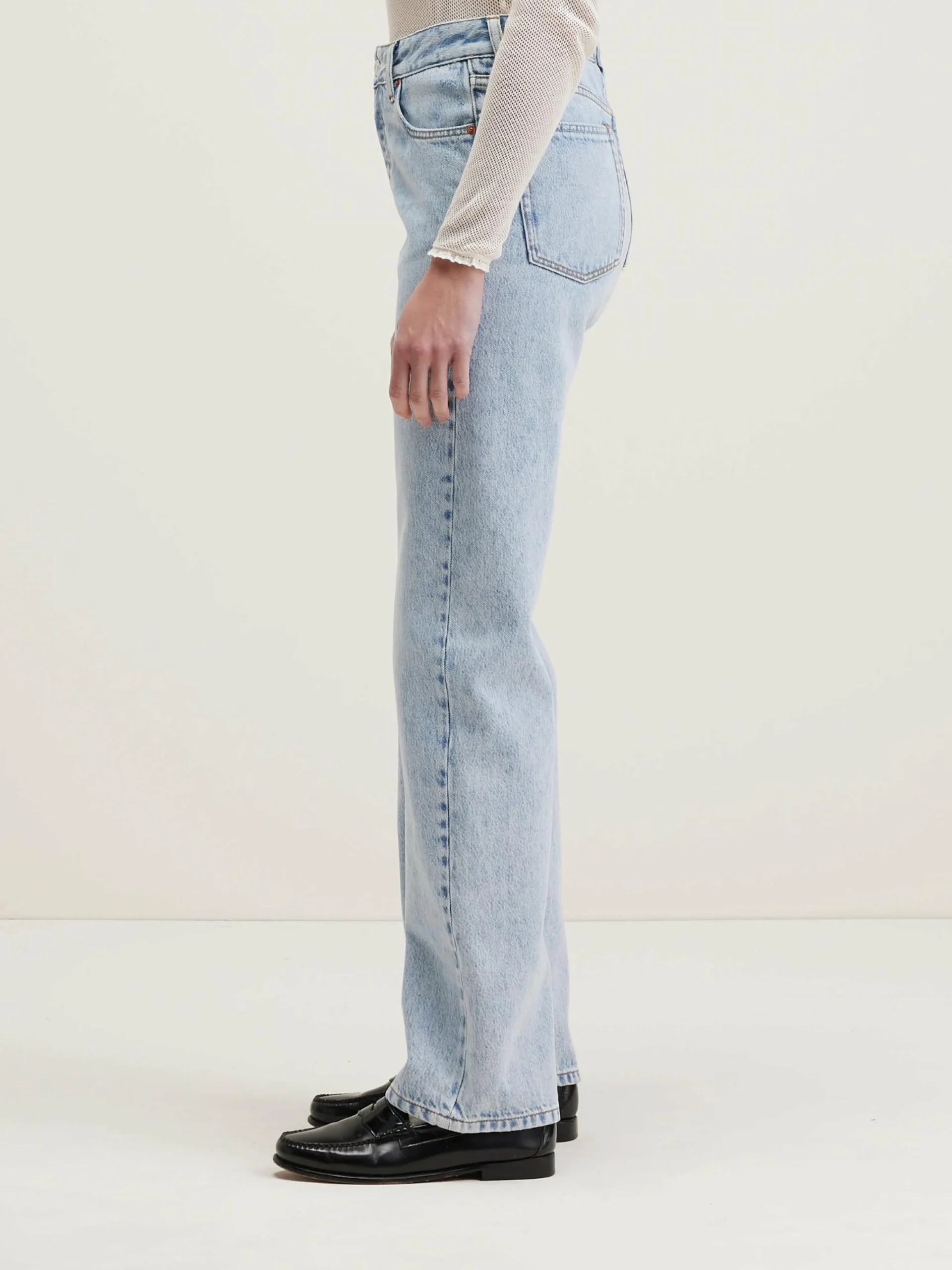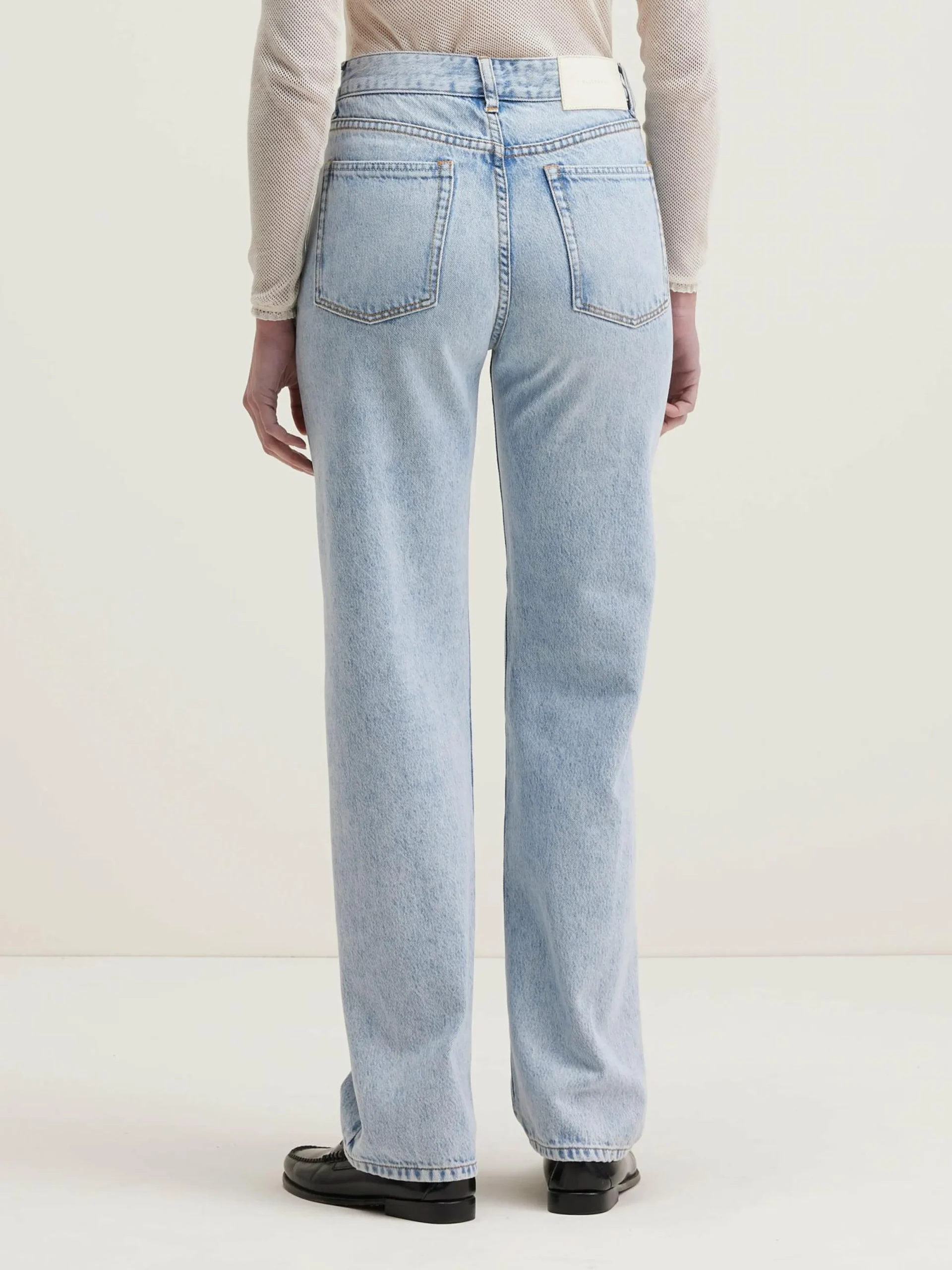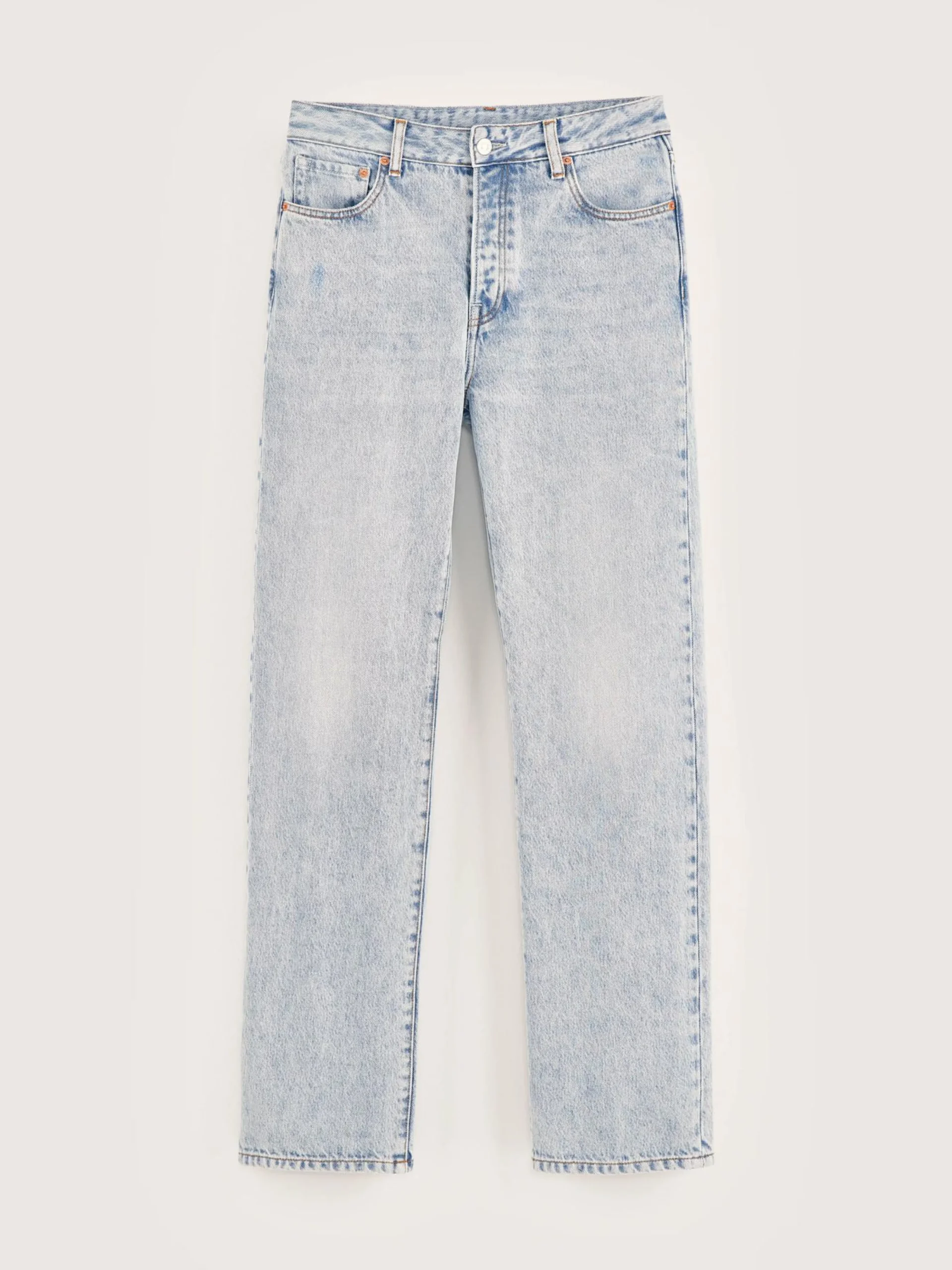 High-waist jeans met rechte pijpen, van versleten lichtblauw denim.