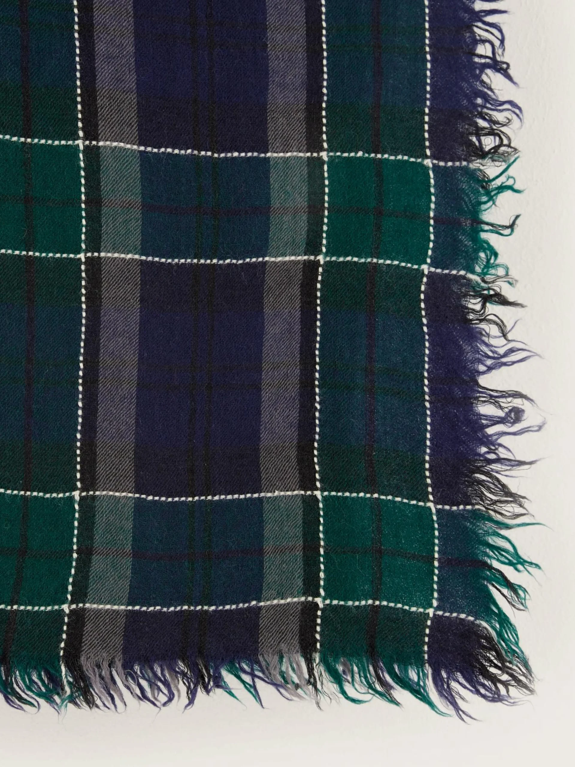 Geweven vierkante wollen sjaal met black watch ruiten.