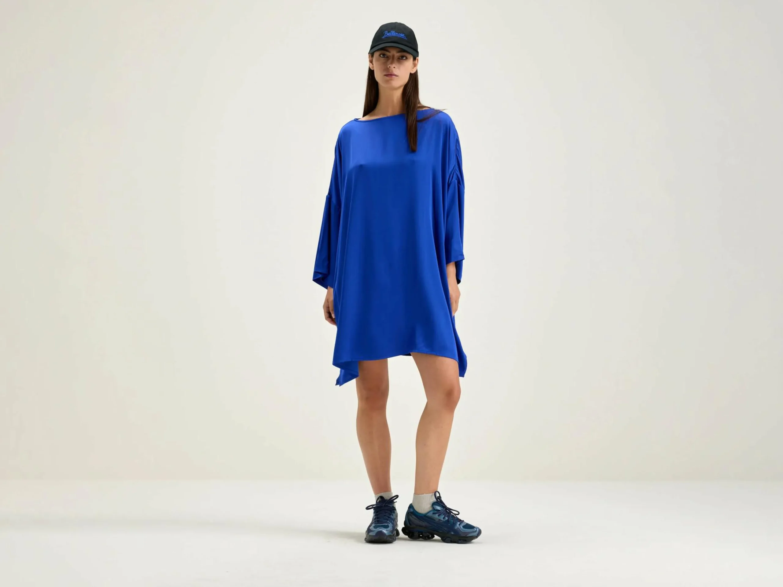 Oversizede, minimalistische lazuurblauwe jurk van viscose.