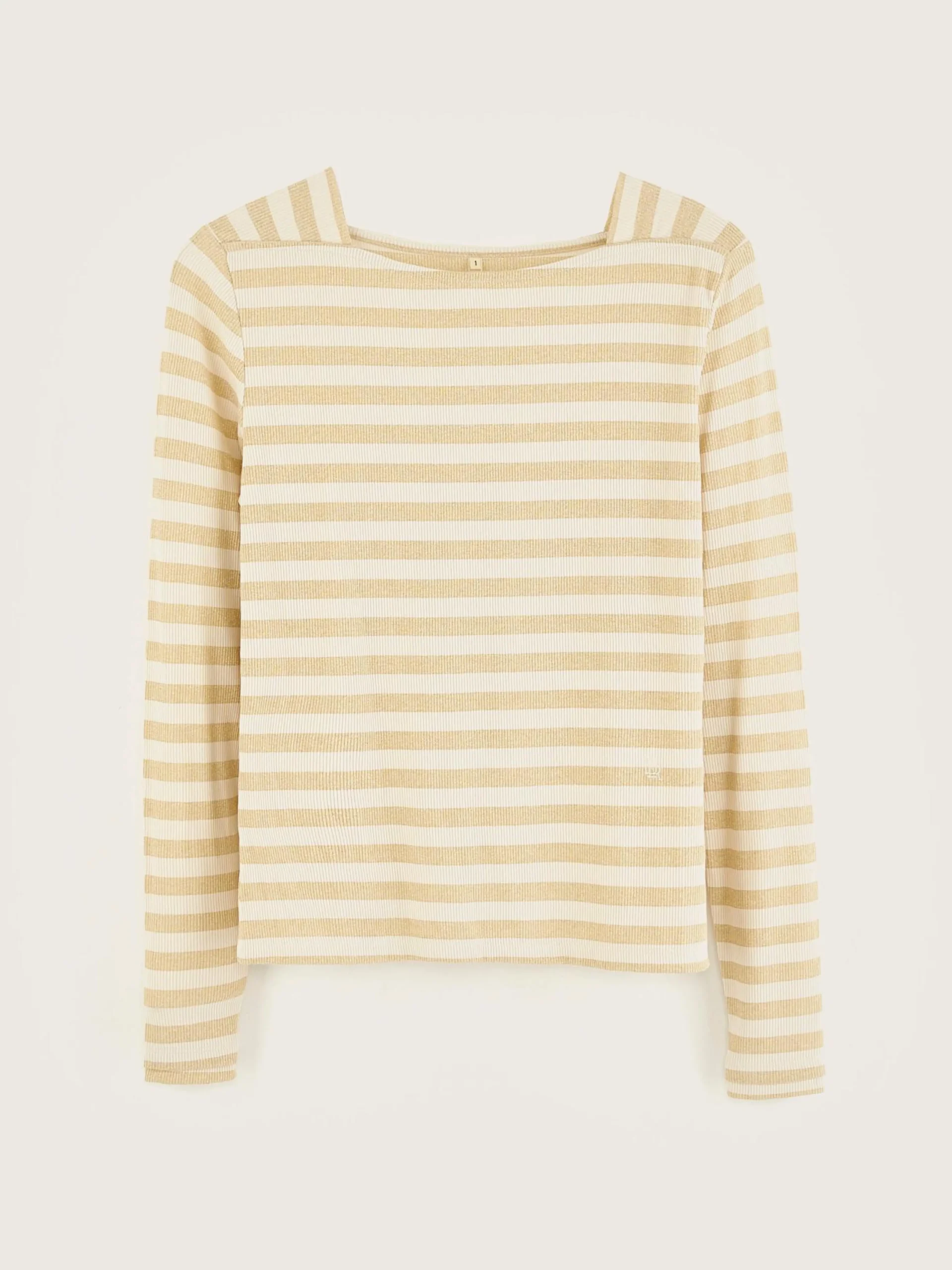 T-shirt met slim fit model, met witte en zilveren lurexstrepen en een matrozenhals.