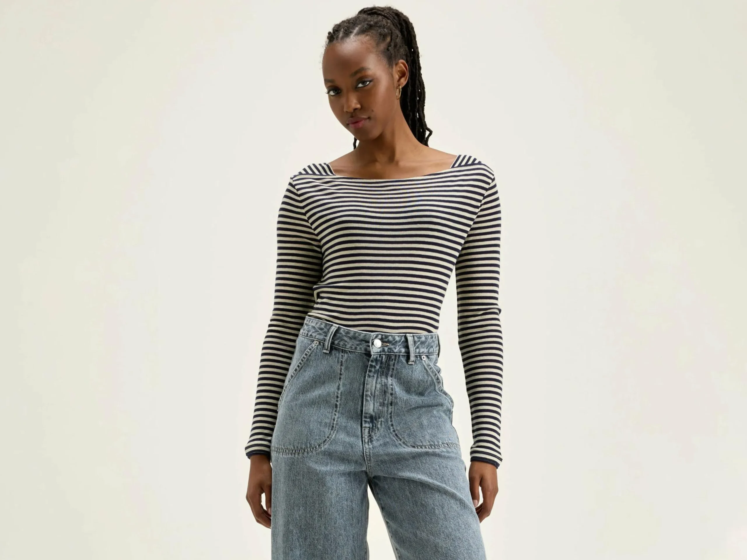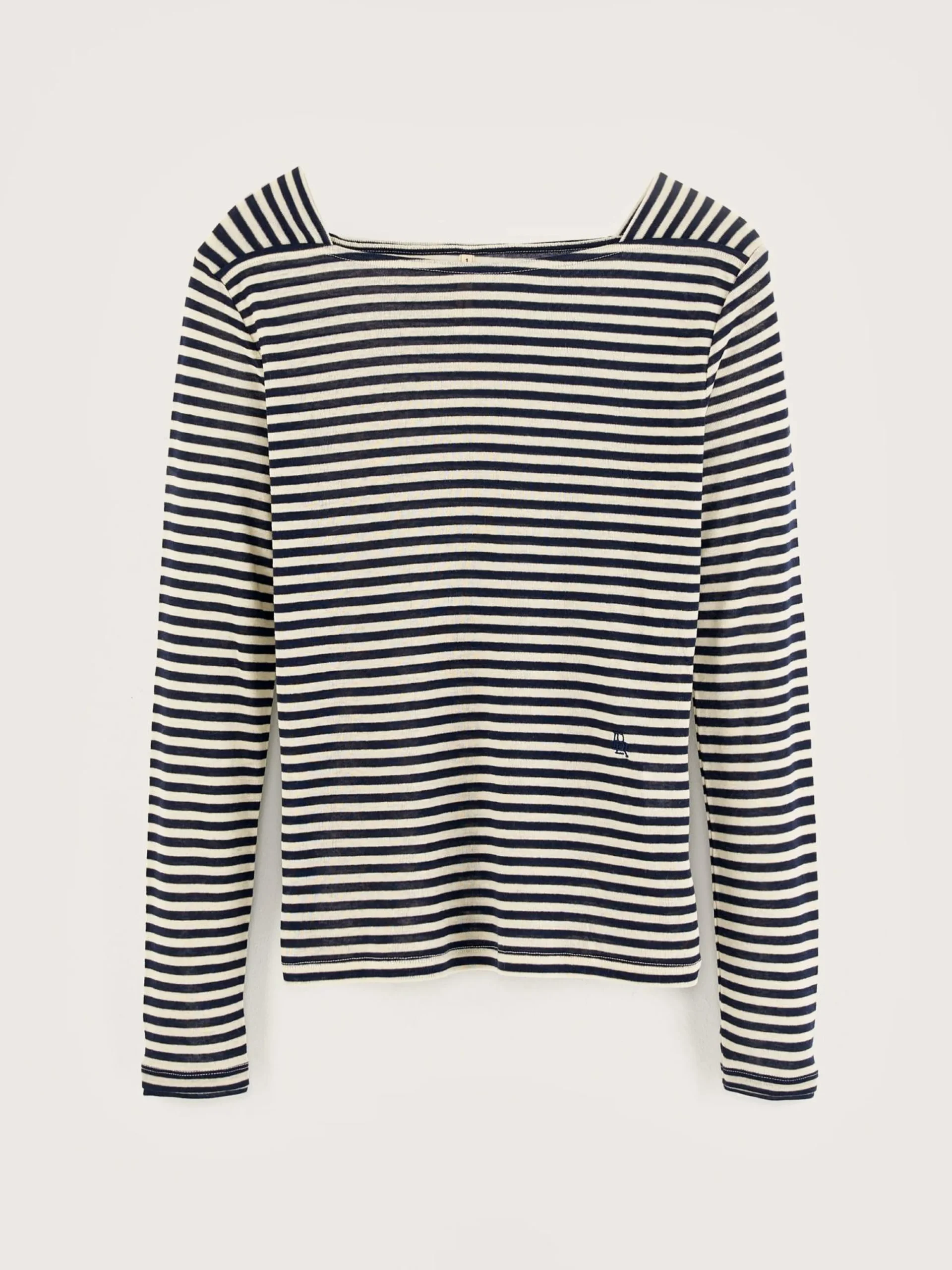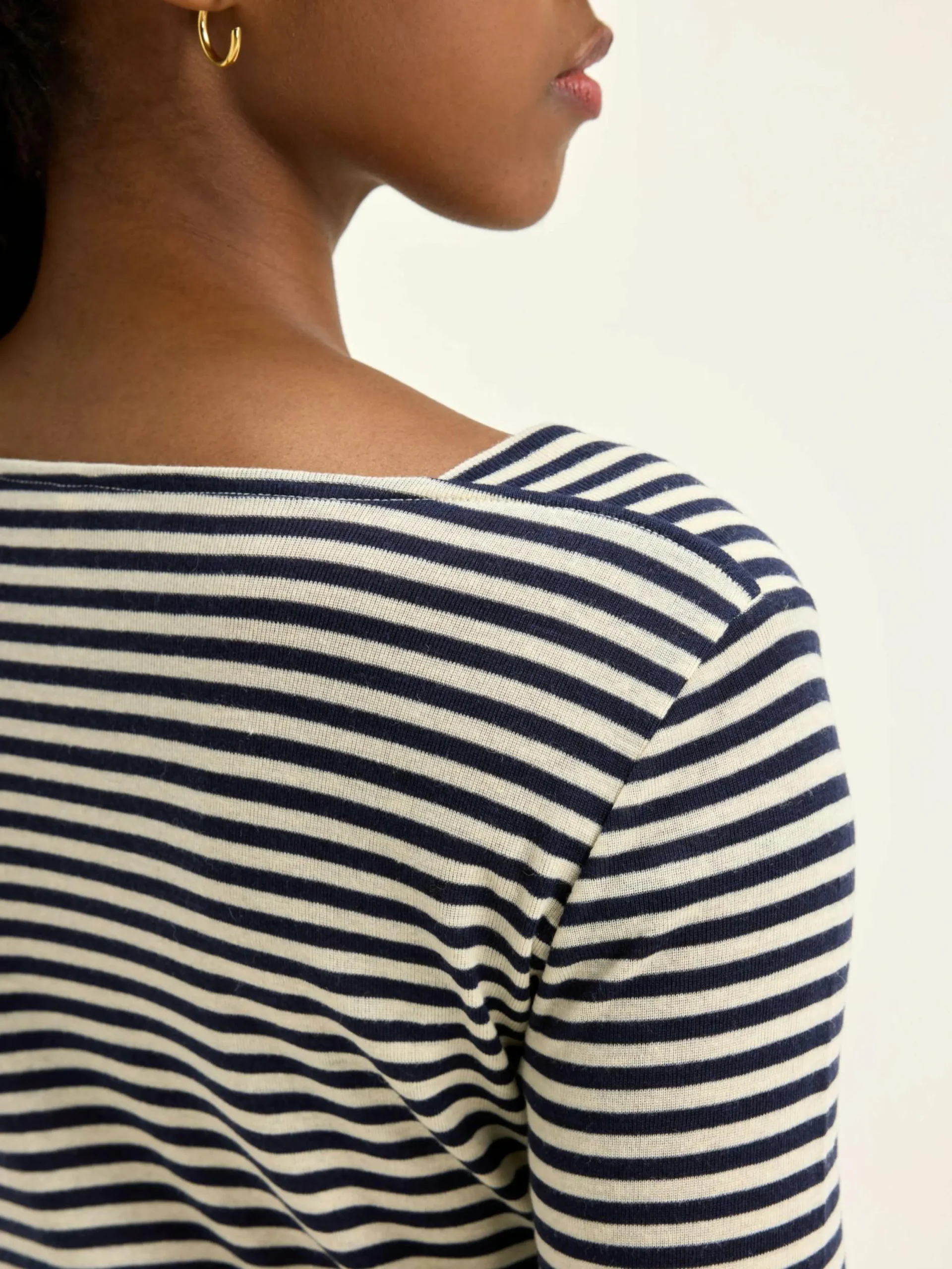 T-shirt met slim fit model, matrozenhals, lange mouwen en witte en zwarte strepen.