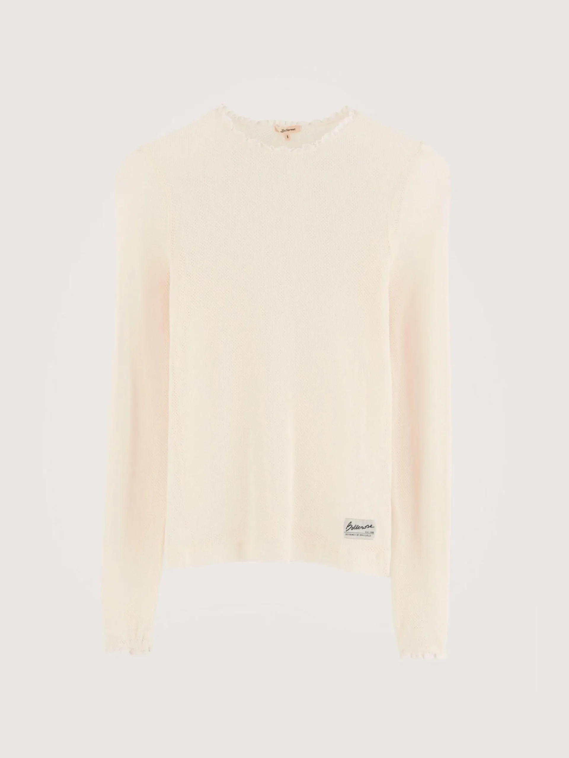 Slim fit T-shirt met lange mouwen van crêmekleurig bio katoen-mesh.