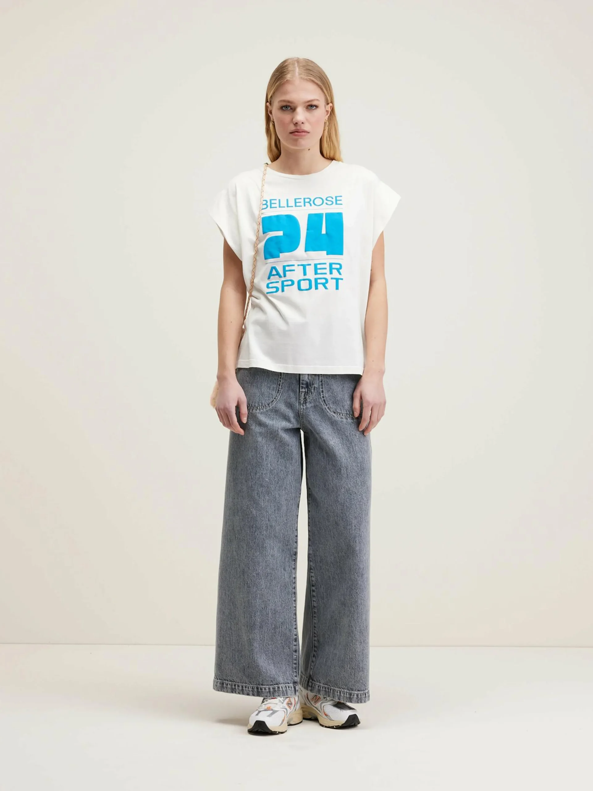 Katoenen haltertop in vintagewit met Bellerose 2024-print vooraan.