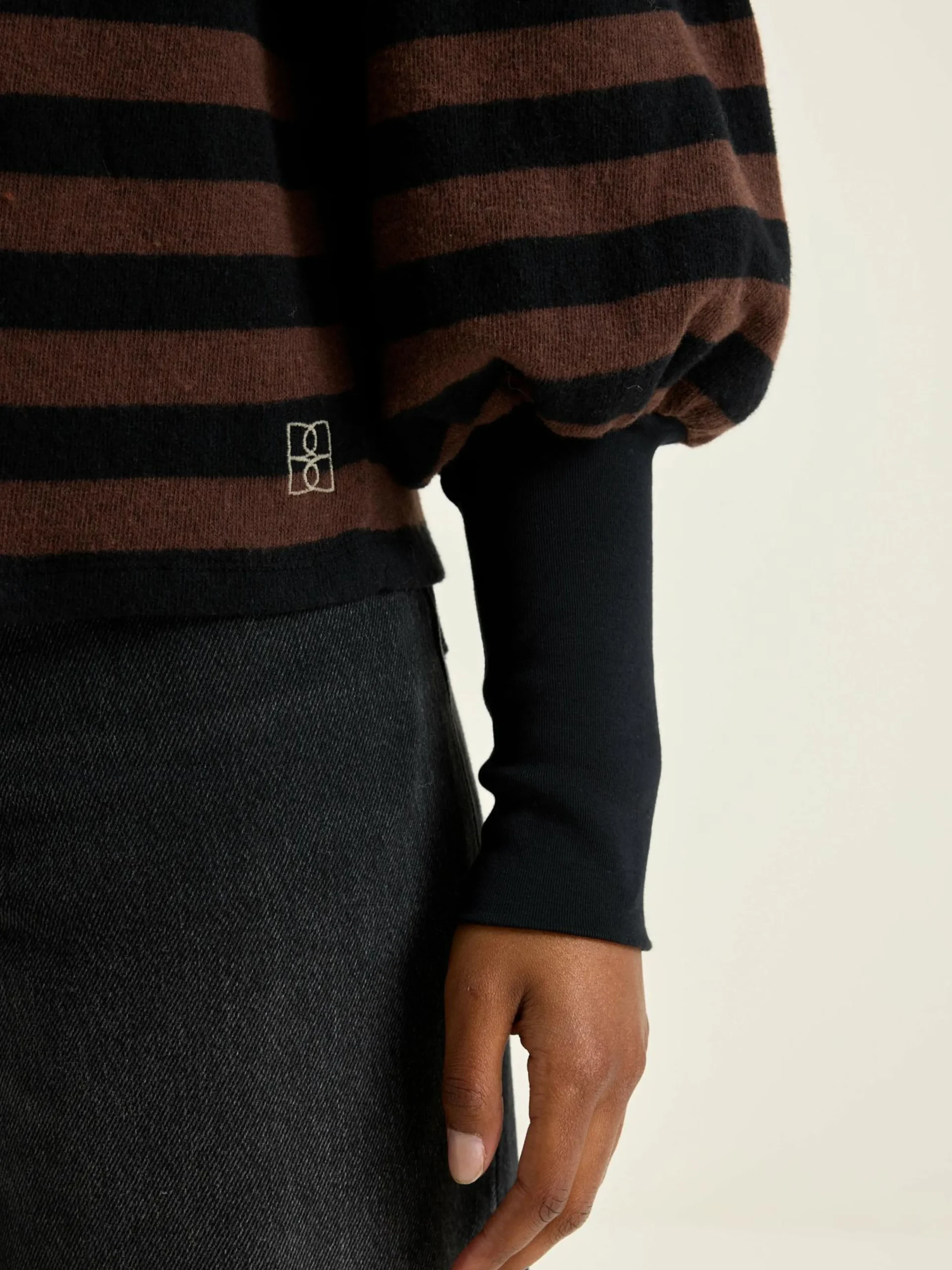 T-shirt met pofmouwen met aansluitende randen, van gestreepte jersey.