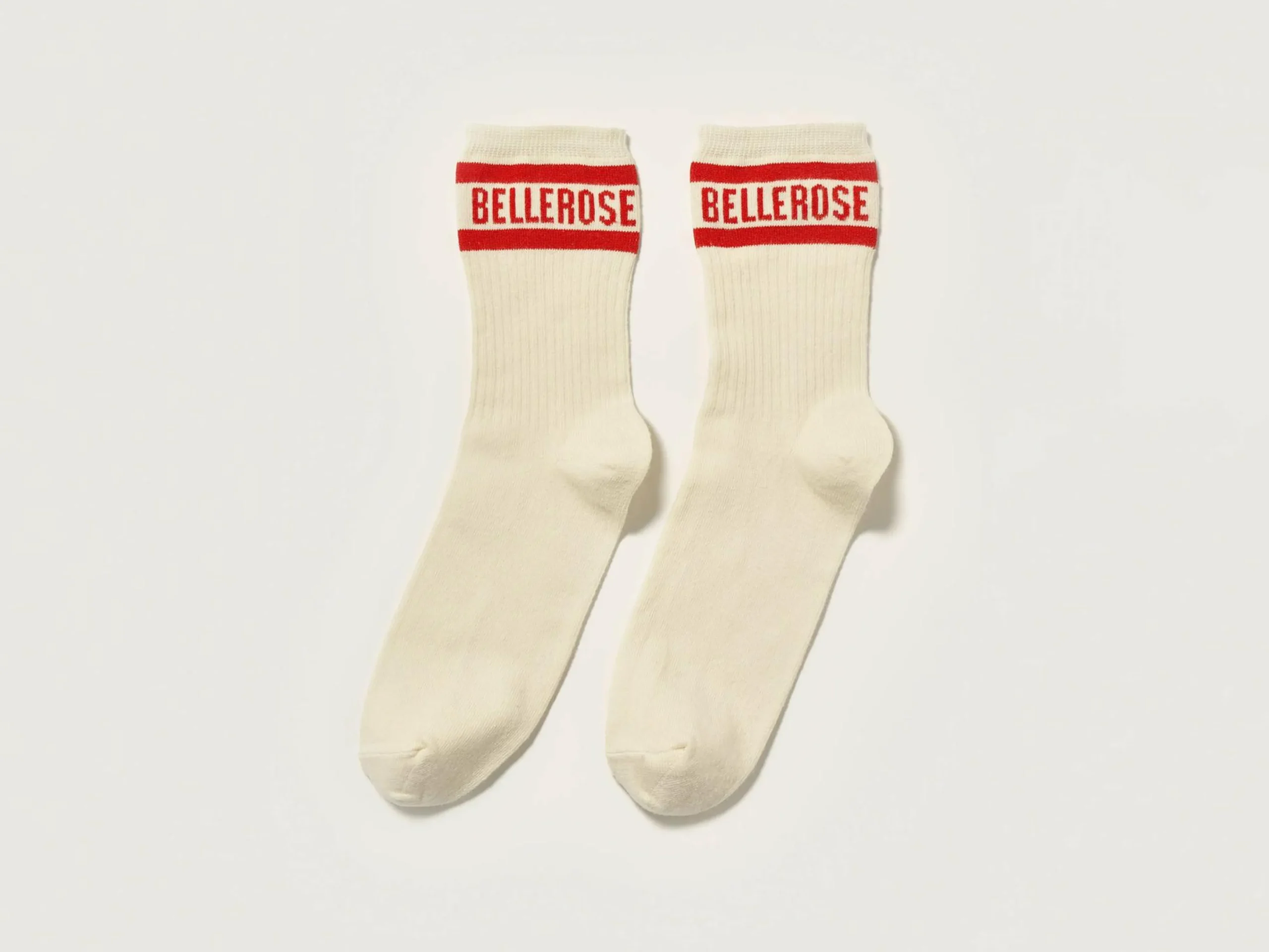 Klassieke sokken in ecru met Bellerose-logo in rood op de enkel.