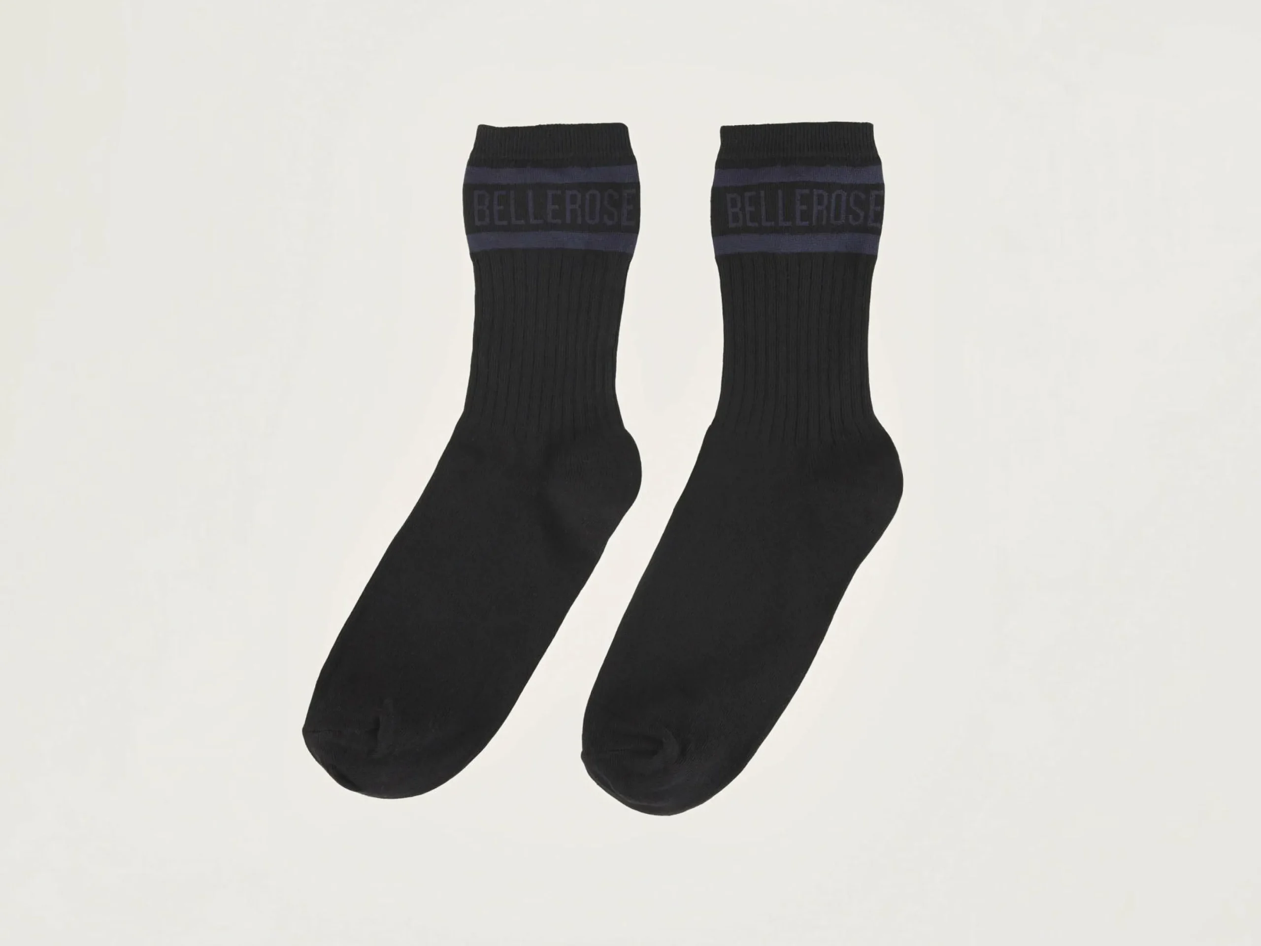 Klassieke sokken in zwart met Bellerose-logo in blauw op de enkel.