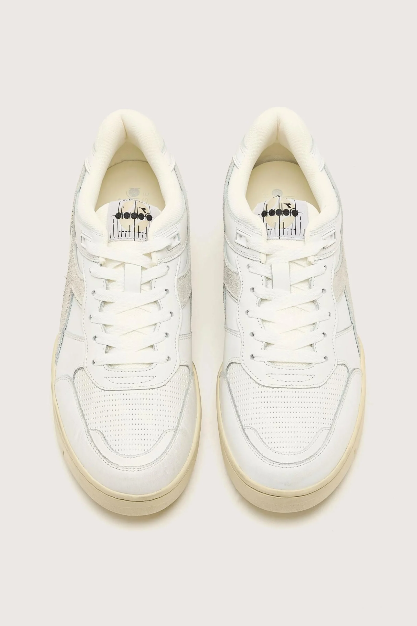 De low-top Diadora B. 560 Used retro op tennis geïnspireerde sneakers hebben een bovenwerk van volnerfleder met een stonewash en wax behandeling.