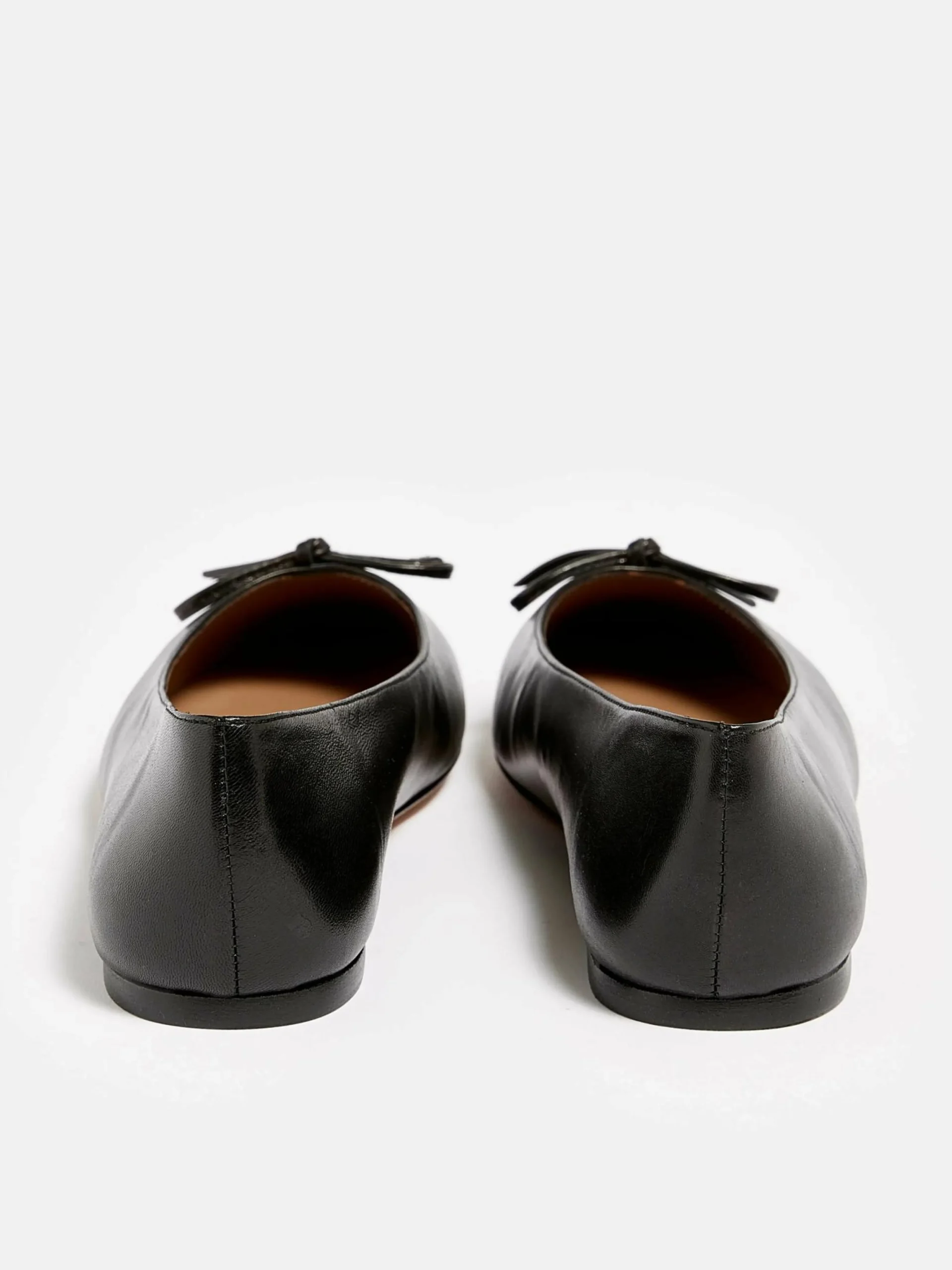 De Bodil is een elegante ballerina voor elke dag in fijn zwart leder met een decoratieve strik.Flattered combineert haar Scandinavische erfgoed met eco-vriendelijke praktijken om tijdloze handgemaakte schoenen te maken.