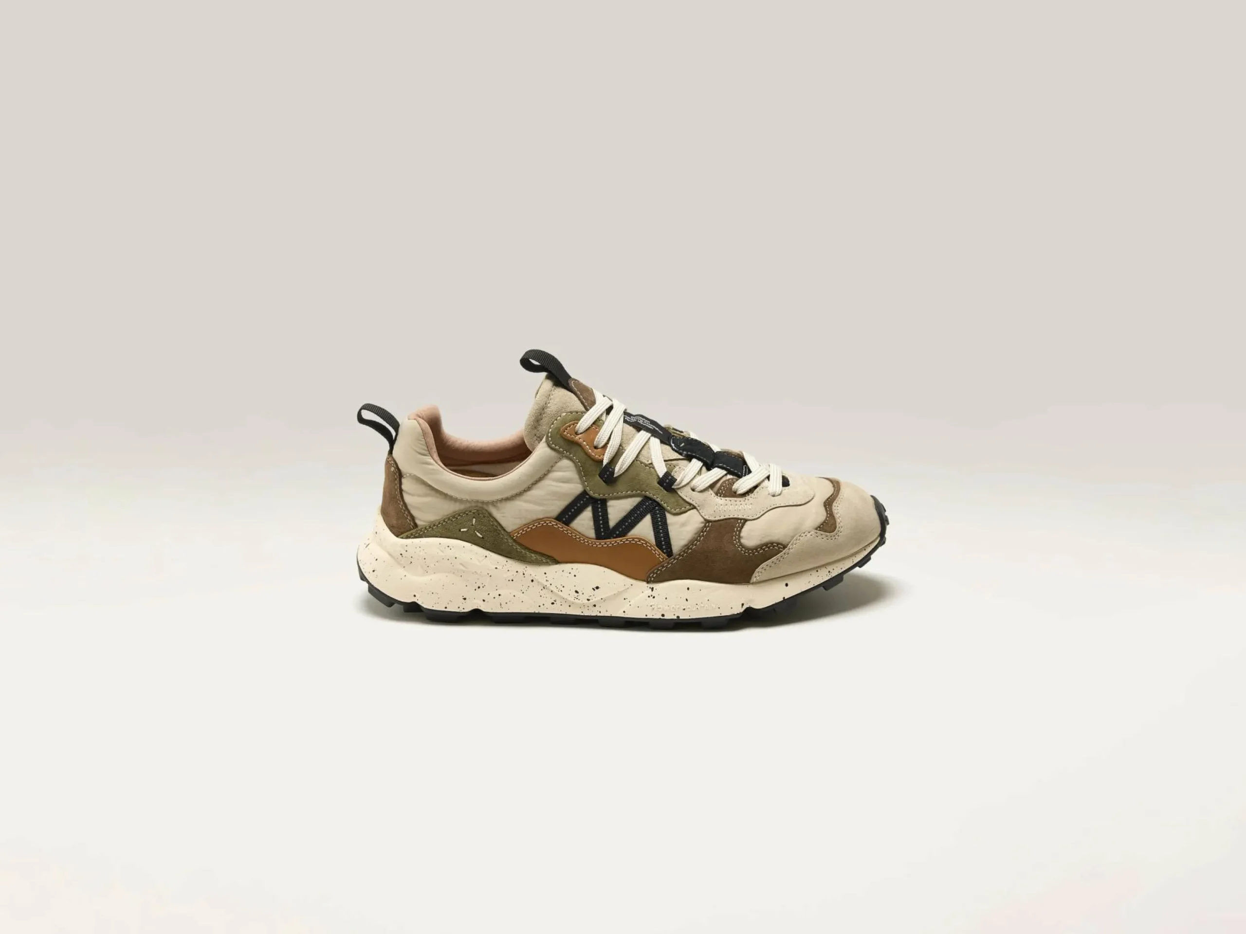 De Flower Mountain Lenzan sneakers hebben een bovenwerk van suède met technische stof en een uitneembare binnenzool van natuurlijk kurk.