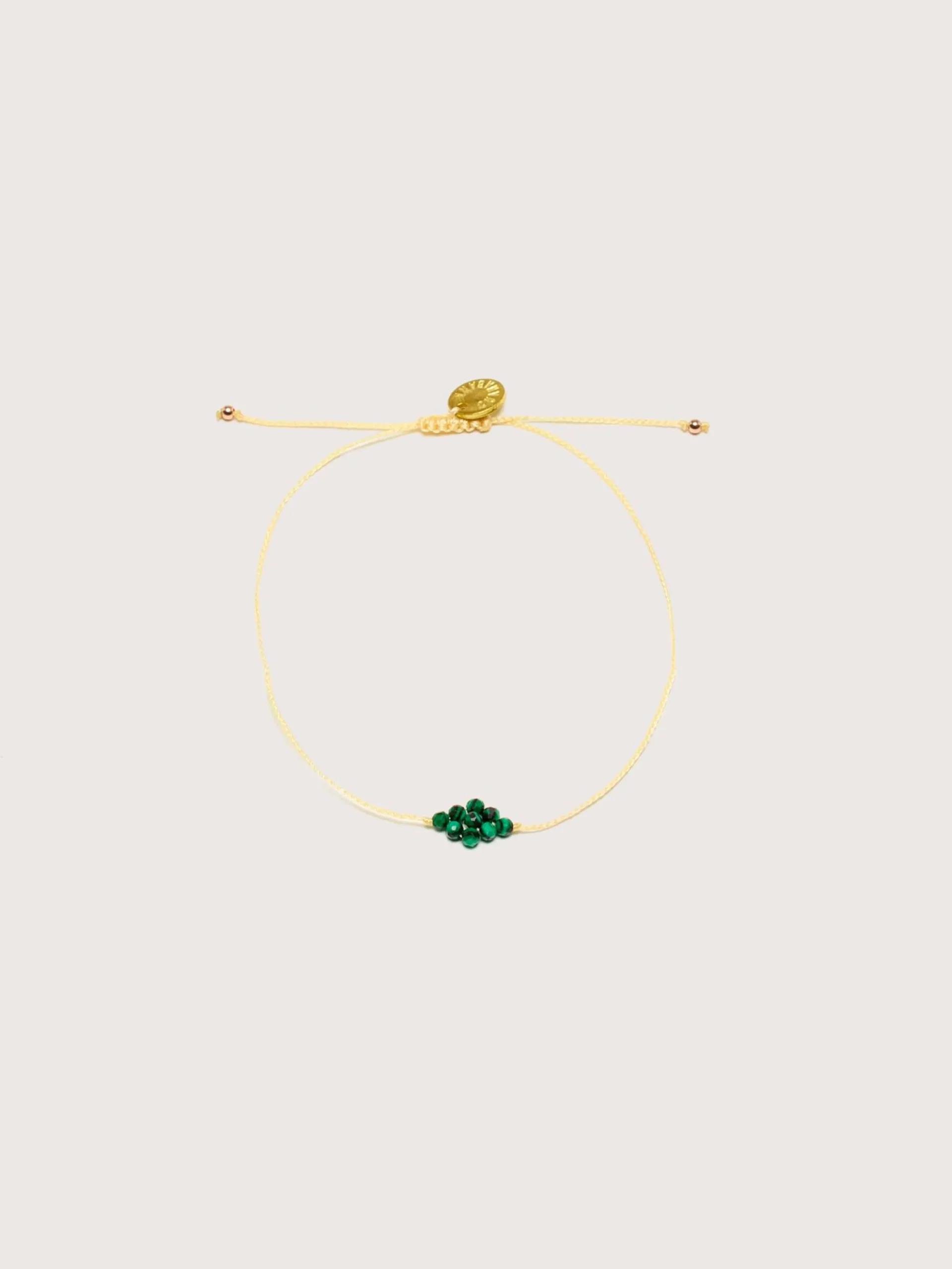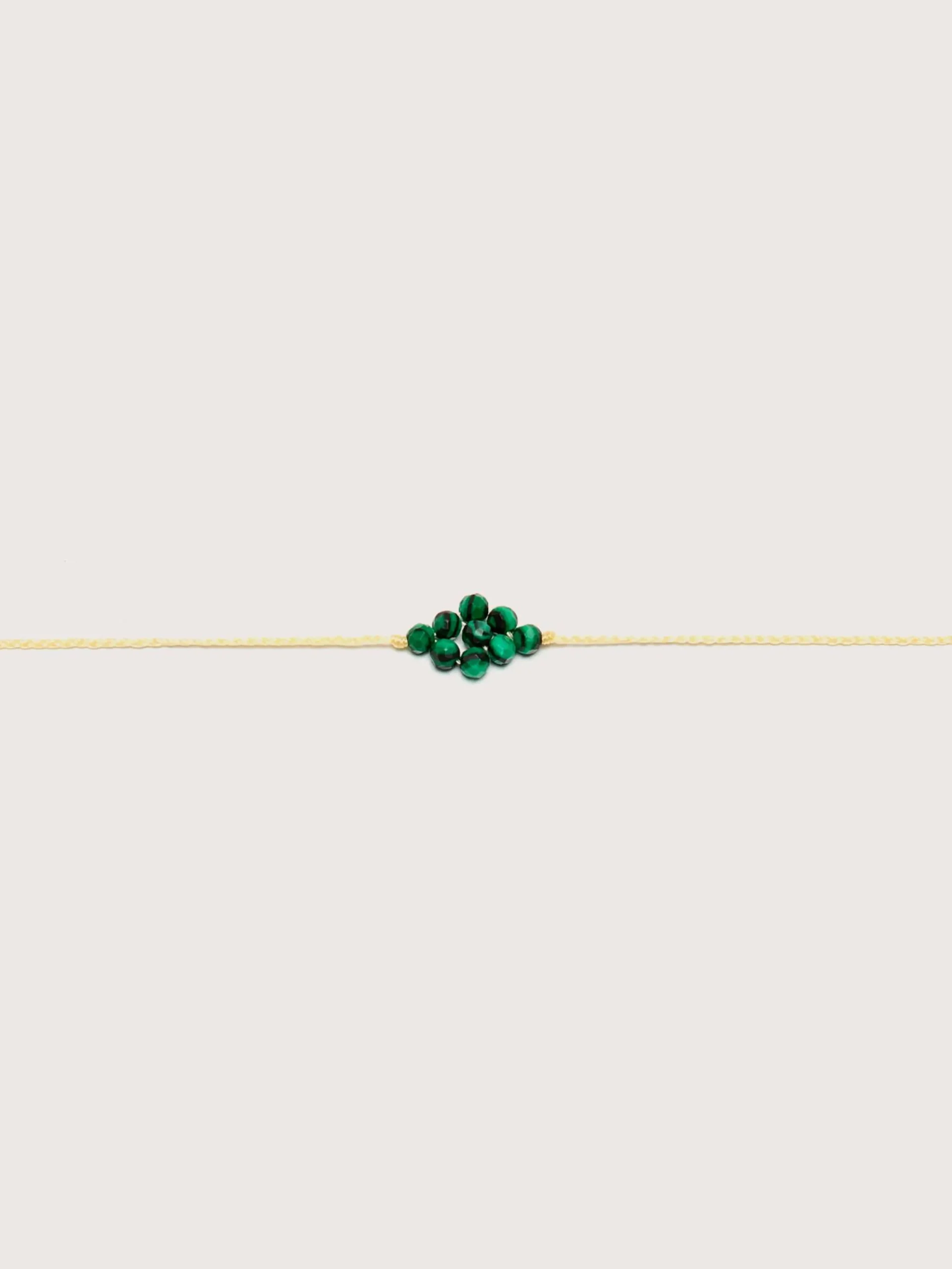 De Guanabana Halley armband heeft een cluster van malachietstenen met een verstelbare sluiting.