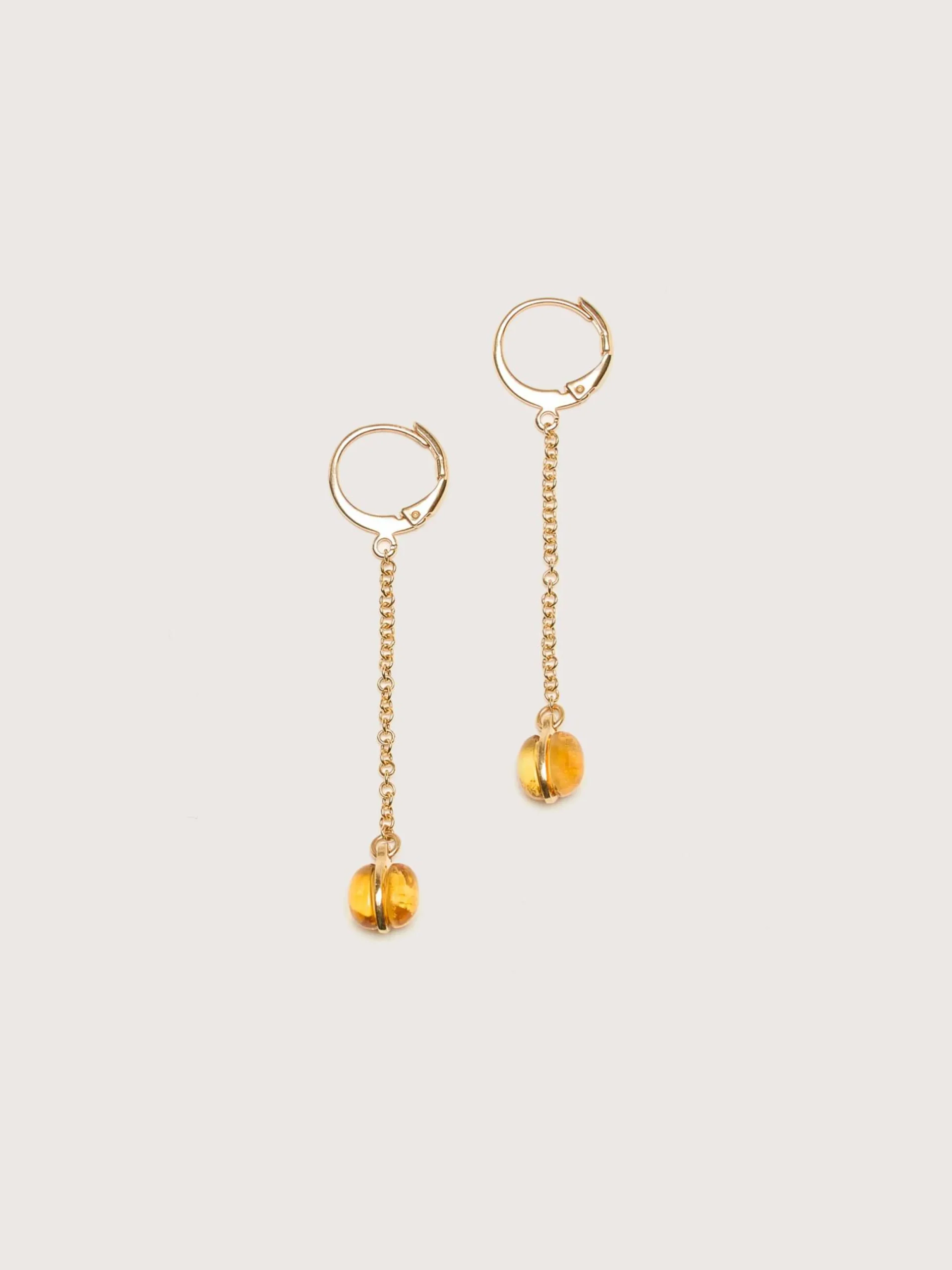 De Helena Rohner Citrine vergulde oorbellen hebben een citrien edelsteen die aan een ketting hangt.