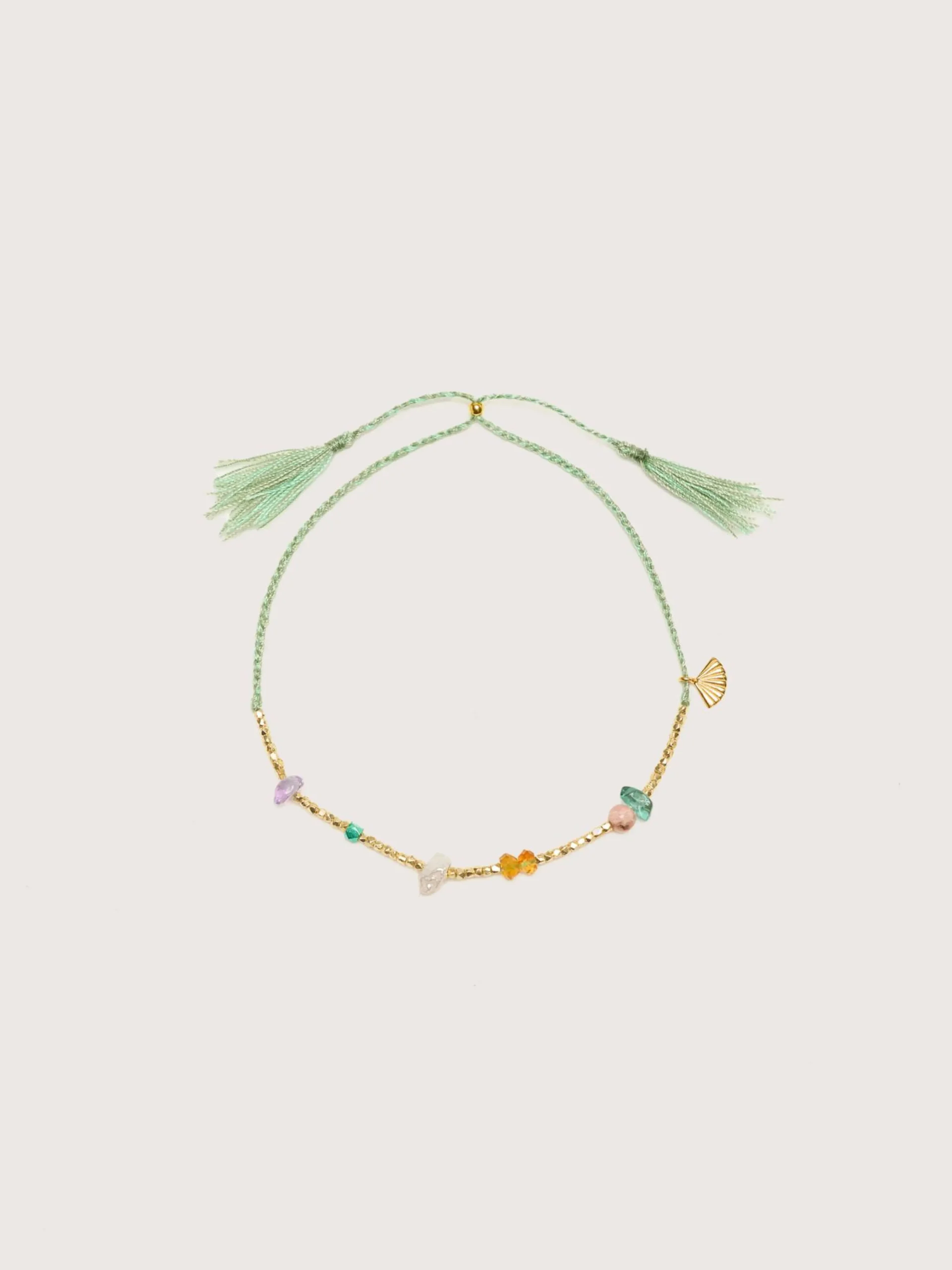 De Blondi armband is een handgemaakte, verstelbare gevlochten armband versierd met kleurrijke edelstenen, kralen en bedels.