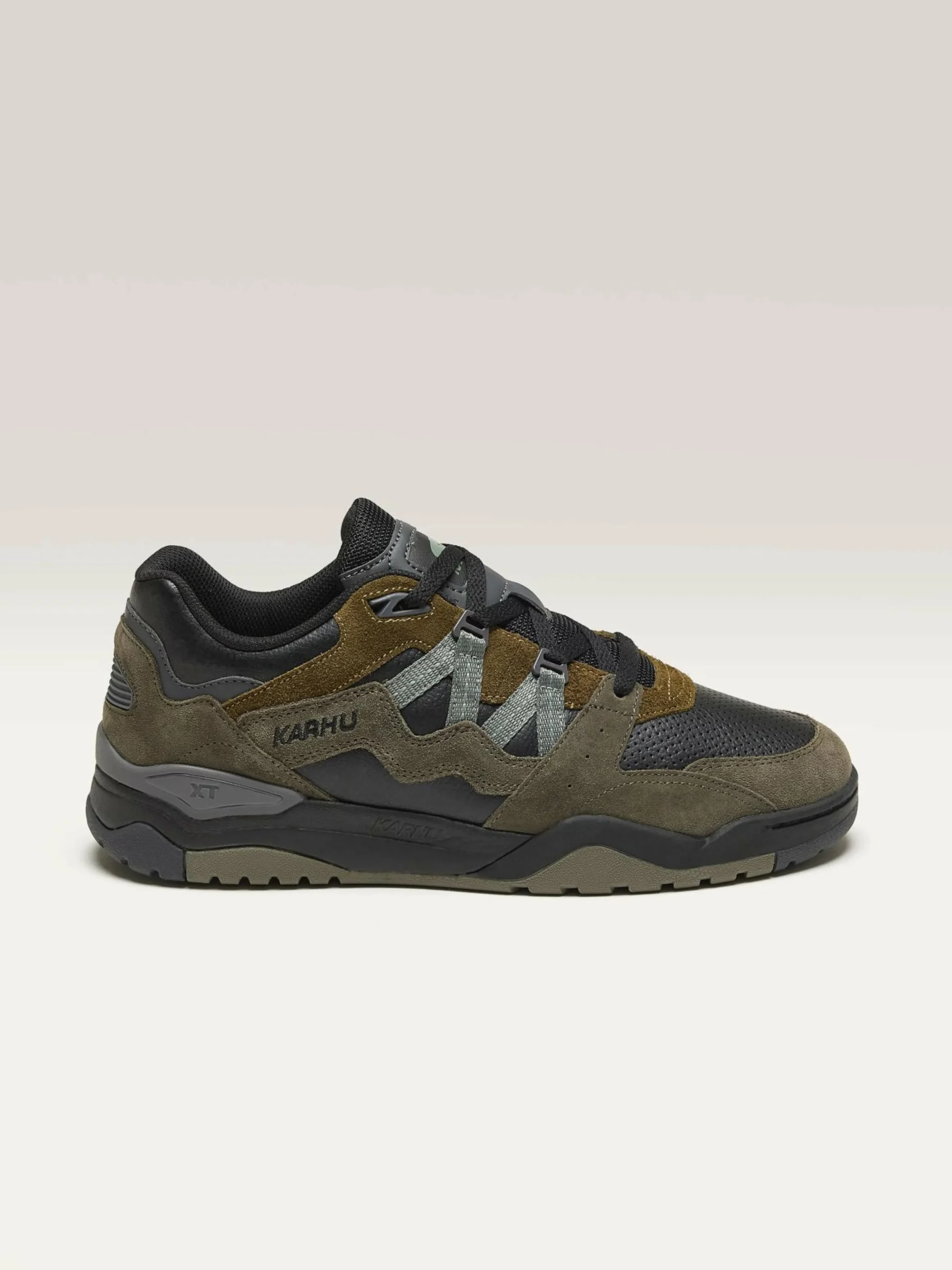 The Karhu Fusion XT lifestyle sneakers feature a modern design in premium materials, a heel stabilizer, and a full-grip rubber outsole.