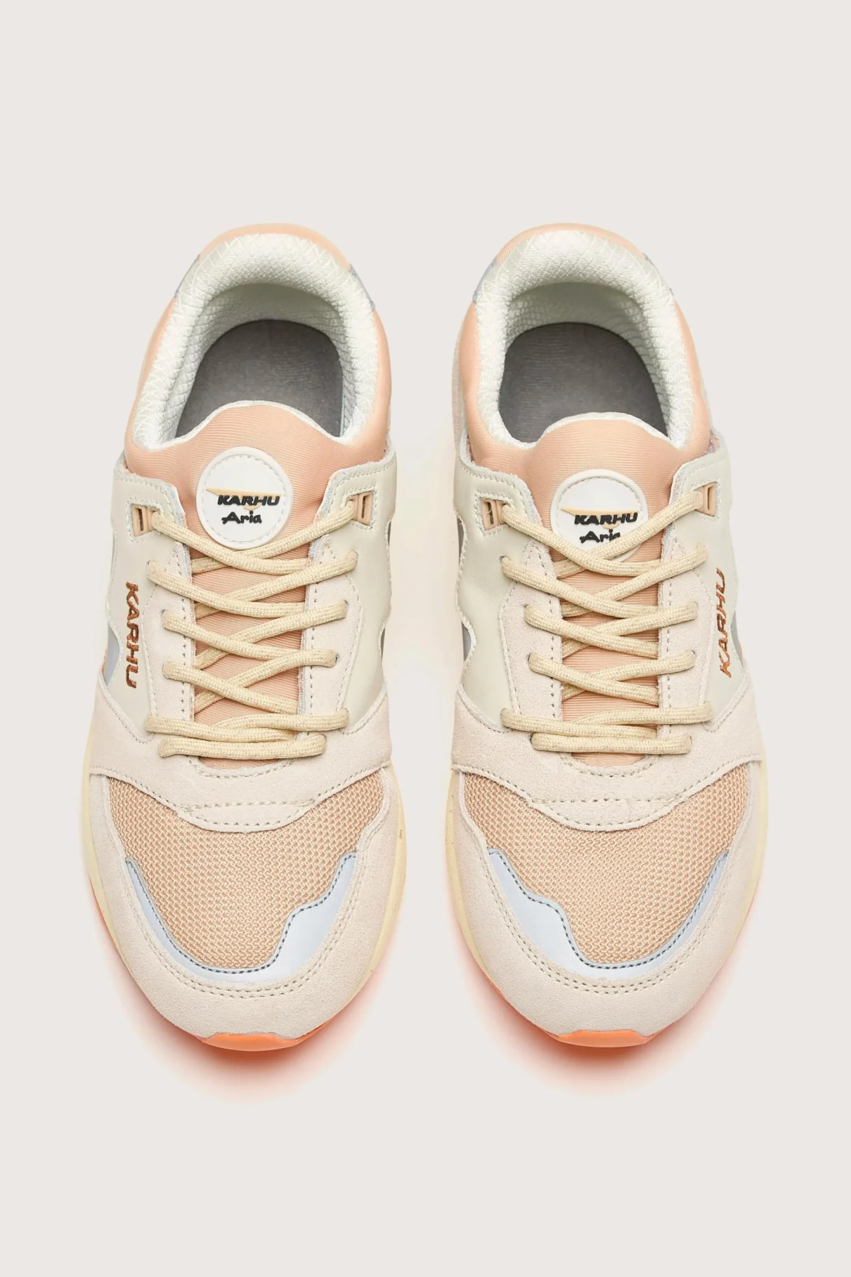 De Karhu Aria 95 lifestyle sneakers hebben een lycra mono sokconstructie en een bovenwerk van suède met waterafstotend mesh.