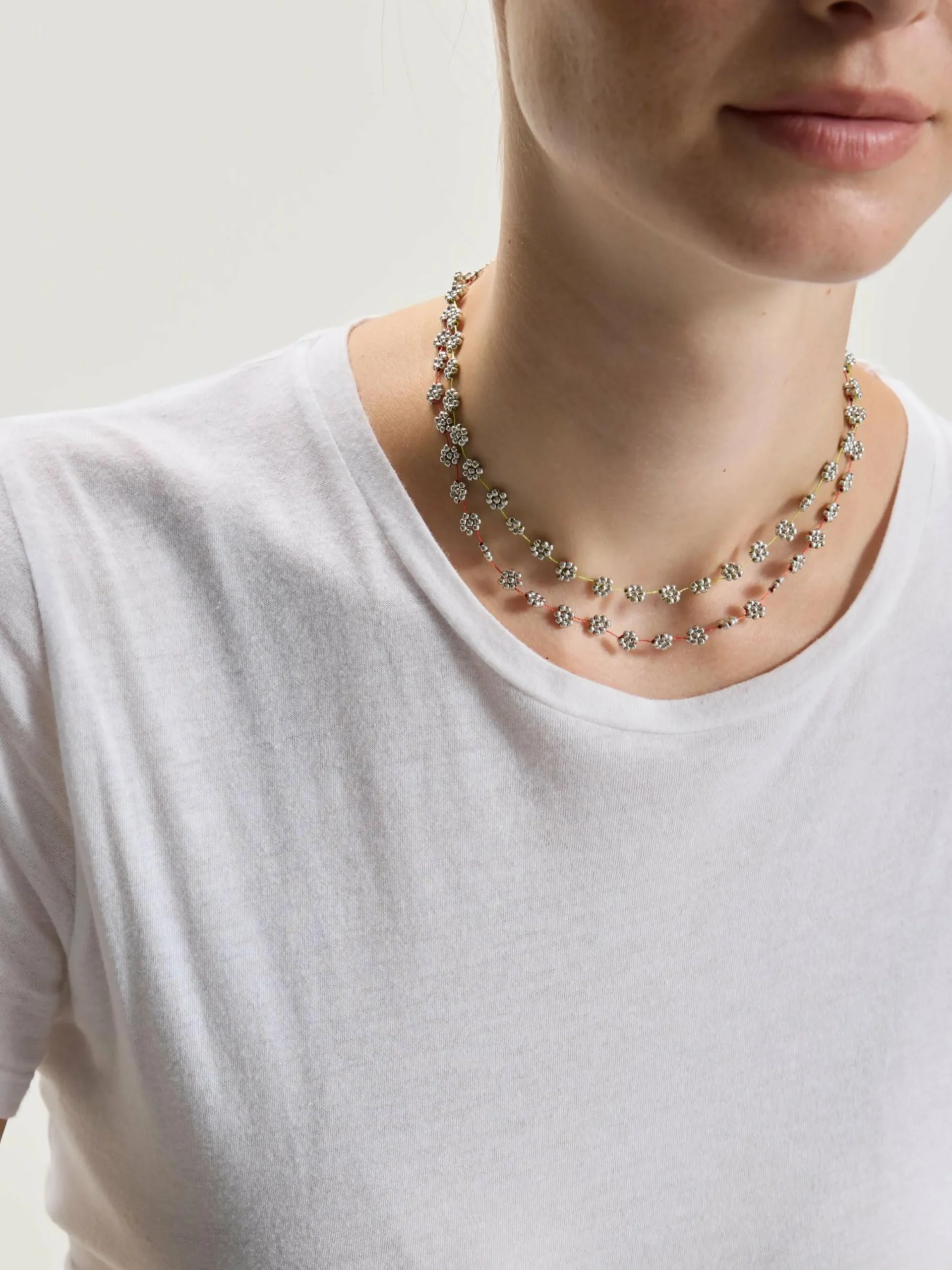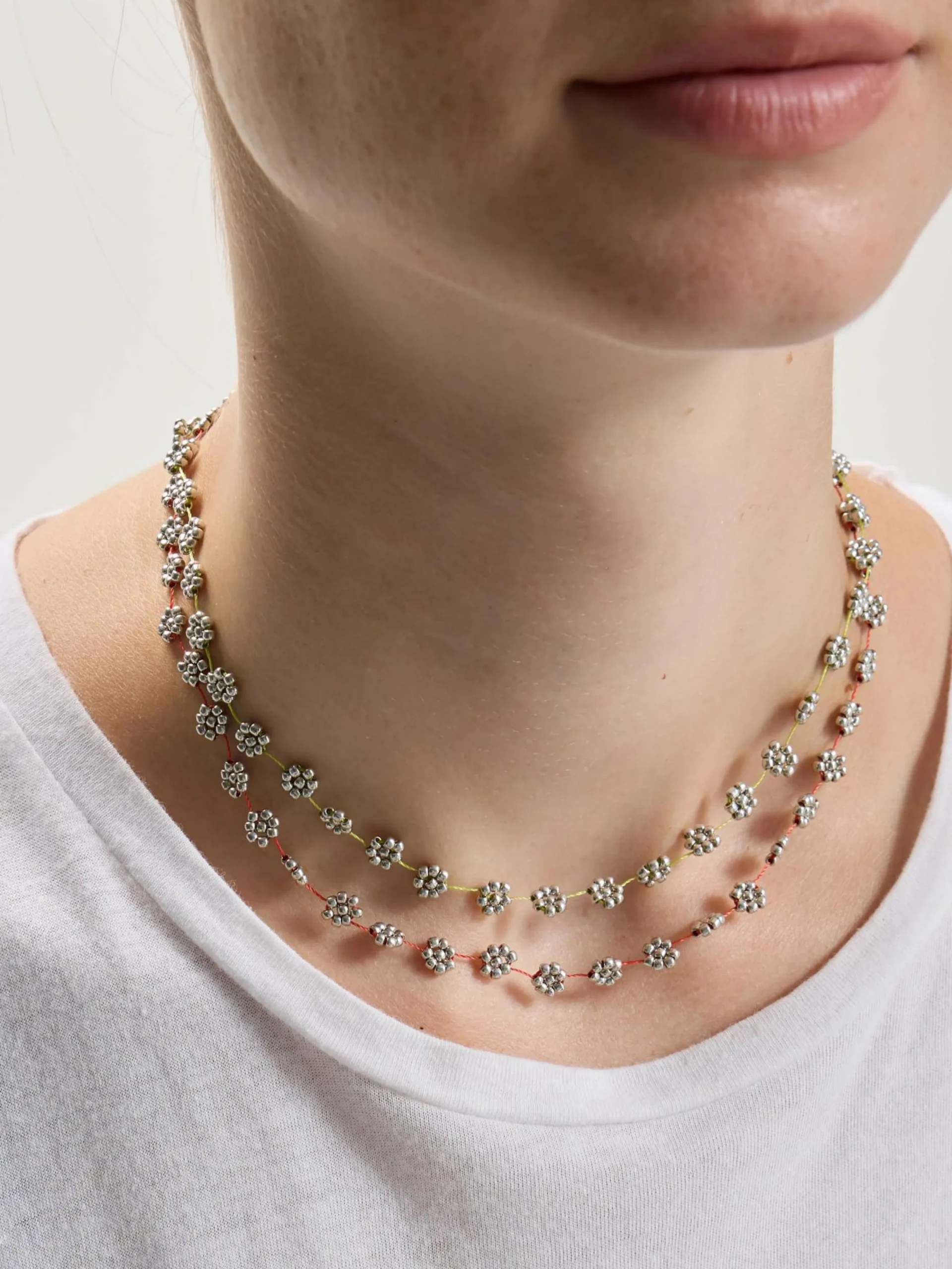 De prachtige Labro Fiori halsketting heeft glaskralen op een duurzaam nylondraad met een stevige sluiting.