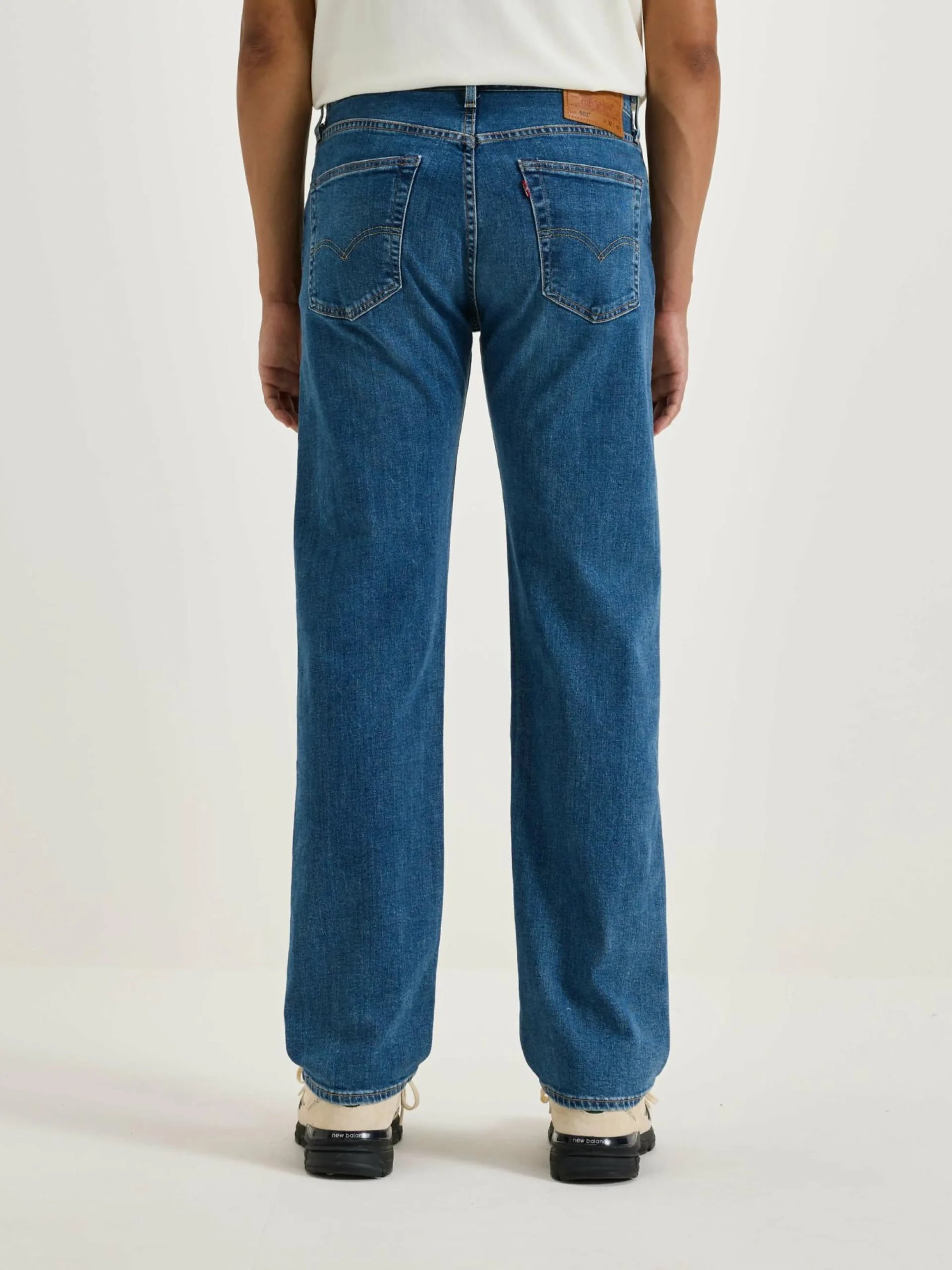 De Levis® 501™ Original denim jeans met geweldige stretch in Medium Indigo Stonewash Blue heeft een klassieke pasvorm met rechte pijpen.