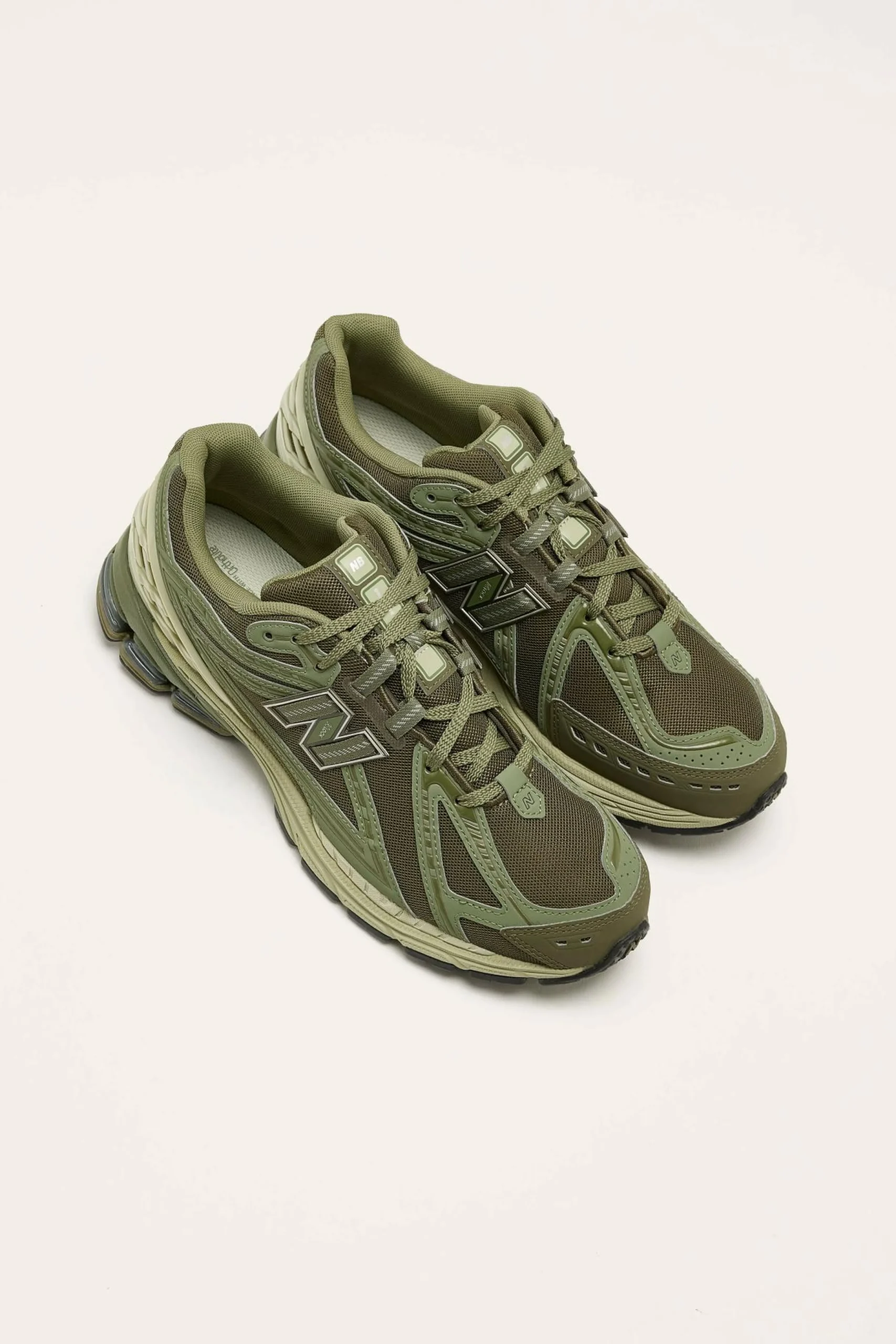 The New Balance 1906R running shoe has a mesh upper with synthetic overlays and a specialized, cushioned midsole and heel.