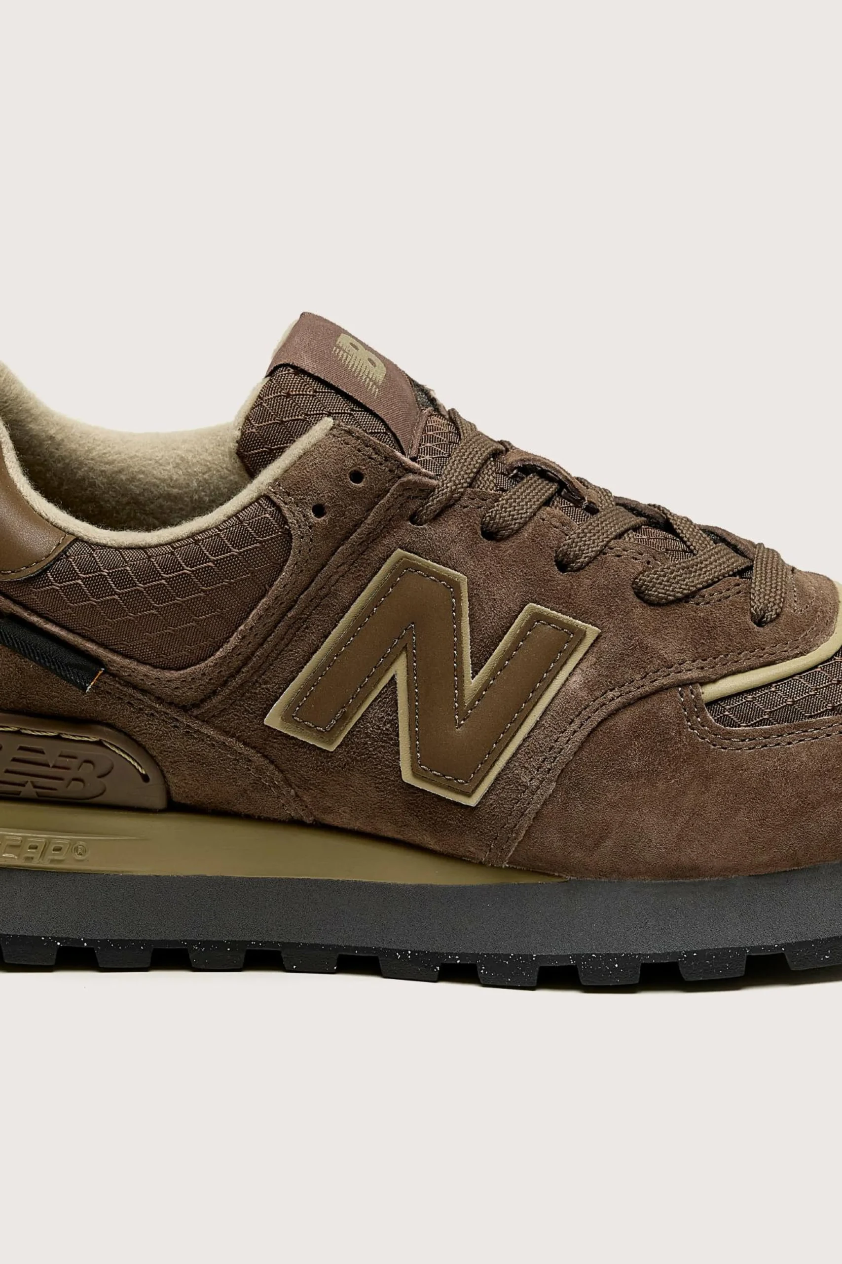 The New Balance 574 Legacy sneakers feature a versatile road and trail hybrid design in premium leather with ENCAP midsole cushioning.
